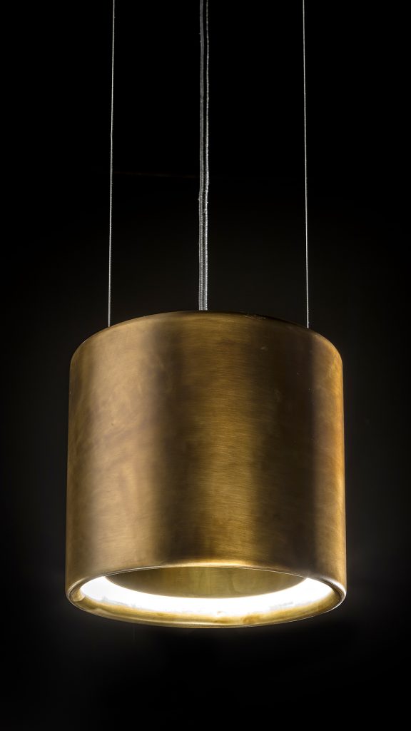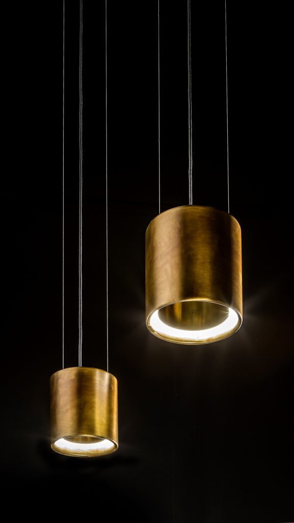 Dimmable pendant led lamp (energy efficiency index a), energy saving with warm light, in several compositions made up of burnished finish brass rings or black burnished finish steel rings. Handmade with traditional craftsmanship, available in different sizes and types of light emission; transformers inserted in the ceiling rosette, rings powered with low voltage through suspension wires.