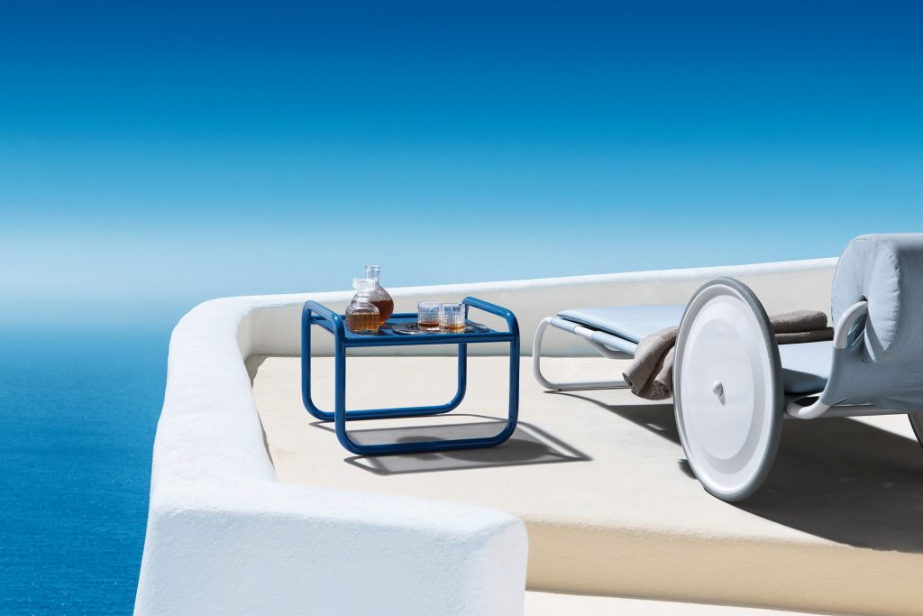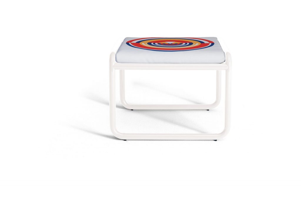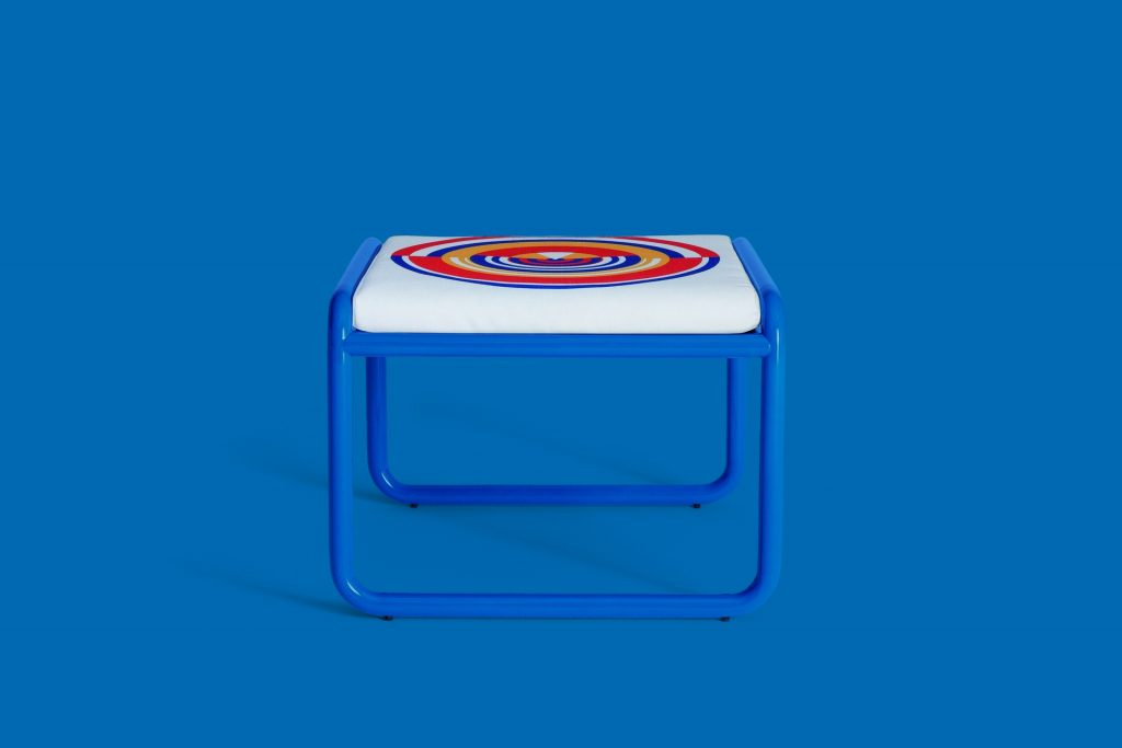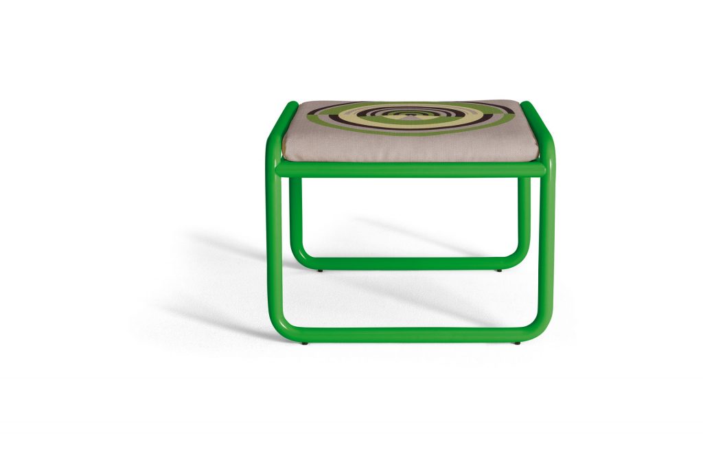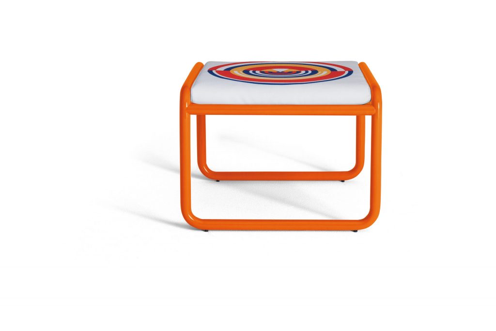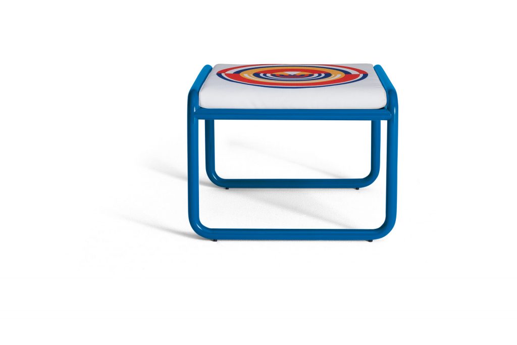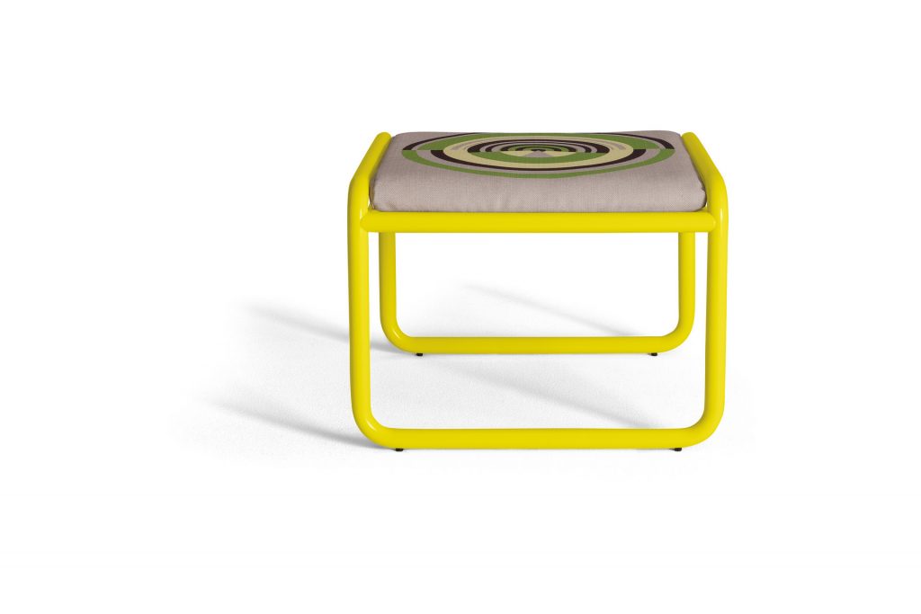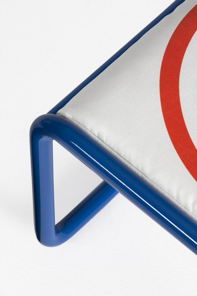 An indispensable accessory in irreverent dress, for an outdoor environment that aims to astonish with a colorful soul. Tubular steel painted in various colors. Handmade cushions with fabric covers printed with the exclusive Locus Solus artwork or available in all of the Exteta fabric sample colors. All covers are completely removable and washable.
