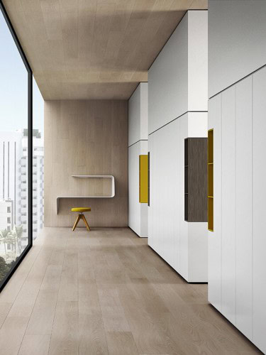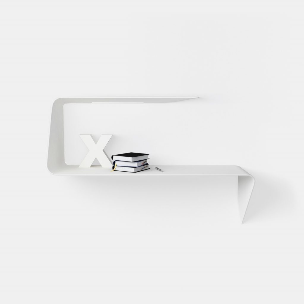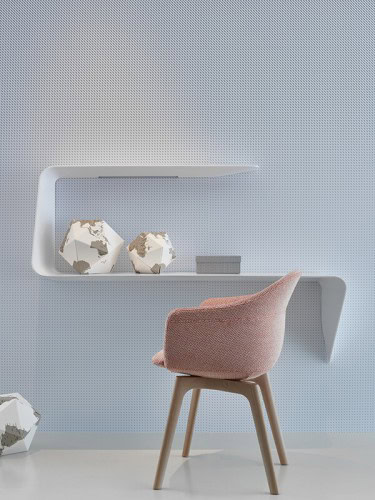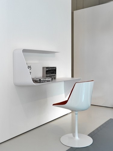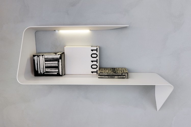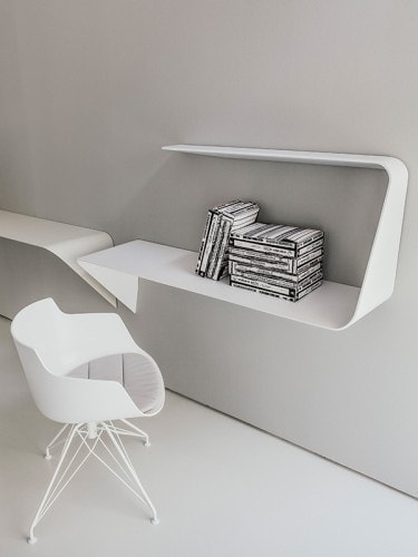 Shelf and/or wall-mounted desk. The wavy shape and the tapered thickness add a strong visual impact to the product's design and image. Mamba is also provided with a white HD LED.