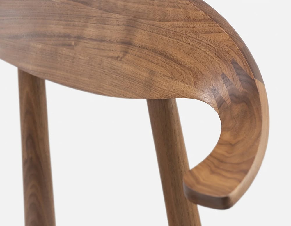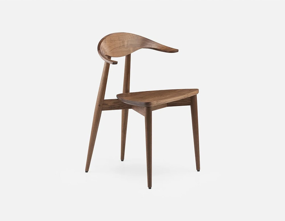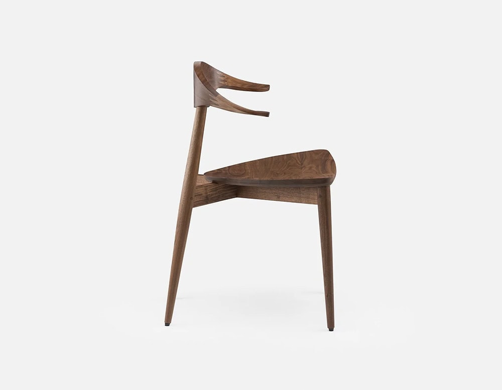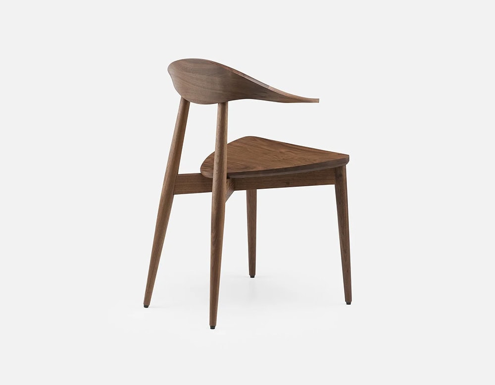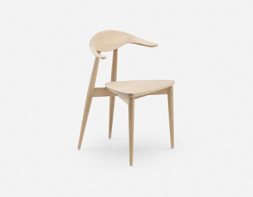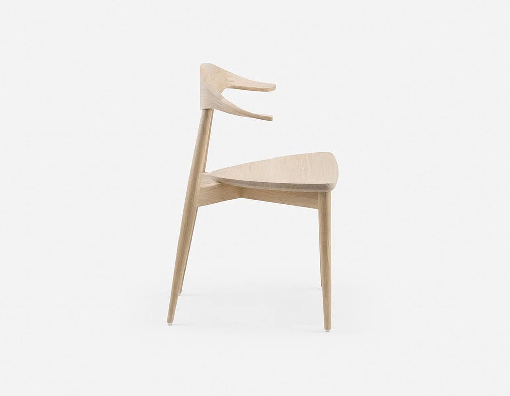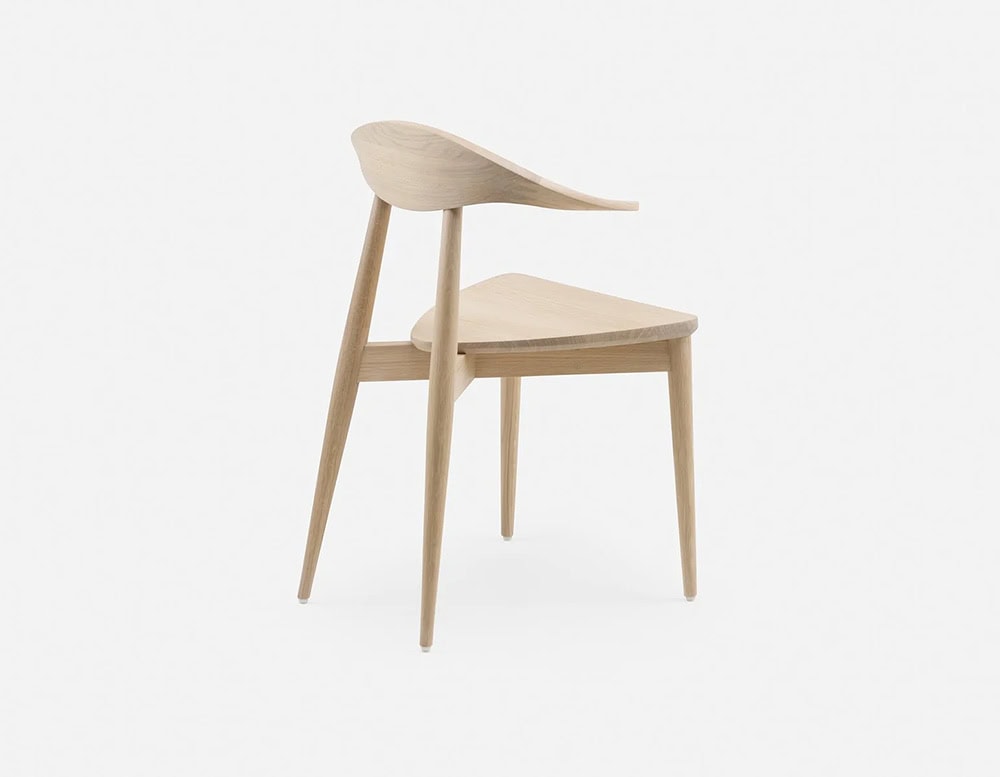 A classic Matthew Hilton design originally conceived in bent plywood, Manta Dining Chair was re-engineered in 2020 to be made entirely from solid wood. The carved wood backrest features a finger joint developed specifically for this chair. The chairs curves enhance the natural grain variations of the material.