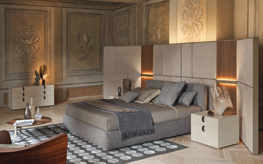 covers - coupled with filling that accentuates the softness - can be selected from Flou's collection of fabrics, leathers and Ecopelle.