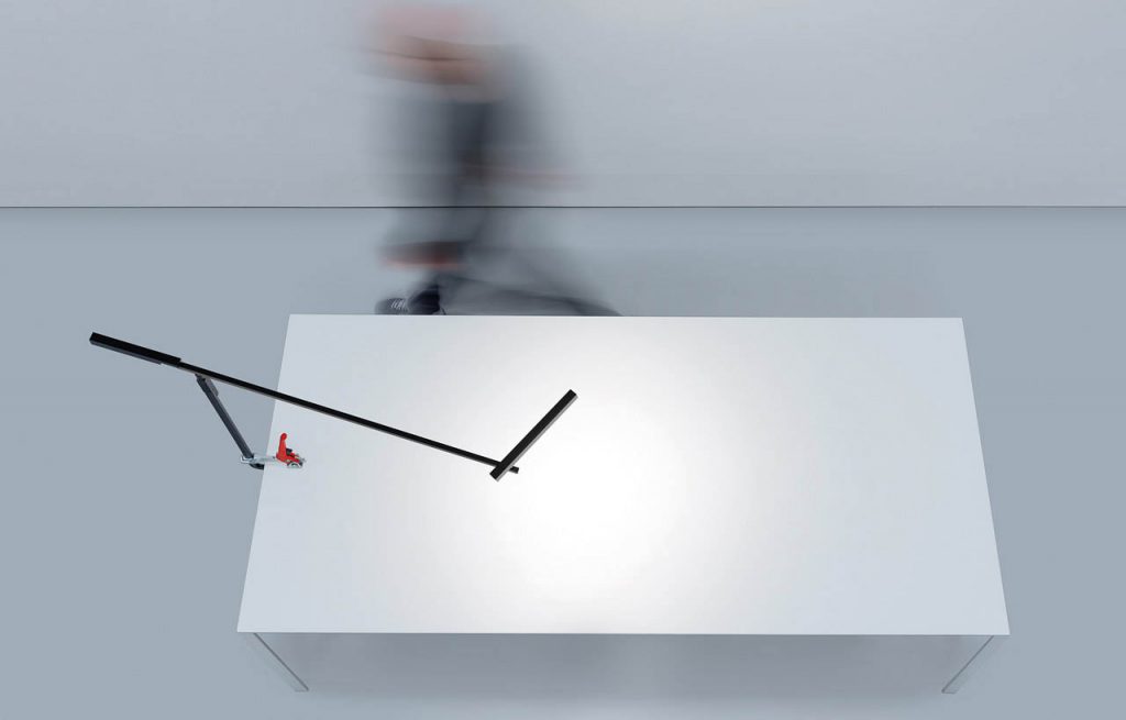 Thanks to the support of a large lever clamp of the type you might find in a workshop, the light source has been positioned far from where the lamp is attached to the table, utilising three adjustable arms.