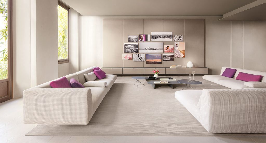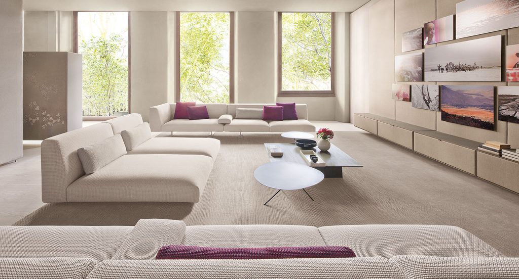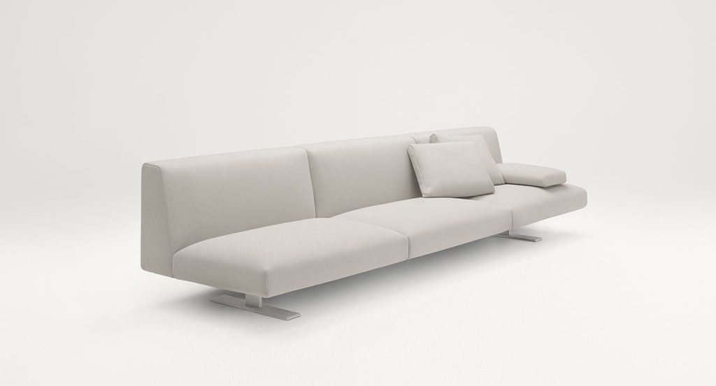 Series composed of sofas and modular seating elements available in two heights and four seat depths. The element dimensions and the possibility to vary their height, thanks to different typologies of feet, allow for classic or informal compositions. - Structure: steel provided with elastic belts and fabric covering. Plastic spacers or steel bases varnished in avorio or grafite colour or finished Ornué. - Padding: stress resistant, differentiated expanded polyurethane; foam covering in polyester fibre and polyamide. - Upholstery: removable and available in a selection of fabrics in the collection. - Coupling system: steel. - Note: Move elements can be completed with indipendent armrests, which can be positioned on the seats in the desired quantity. - or a complete comfort, we advise to use the specific back cushions, made of polyester fibre and a layer of expanded polyurethane. - Awards: The Move sofa has been awarded the GERMAN DESIGN AWARD 2016 in the Excellent Product Design category, the RED DOT AWARD 2015 in the Product Design category and the GOOD DESIGN AWARD 2015 in the Furniture category.