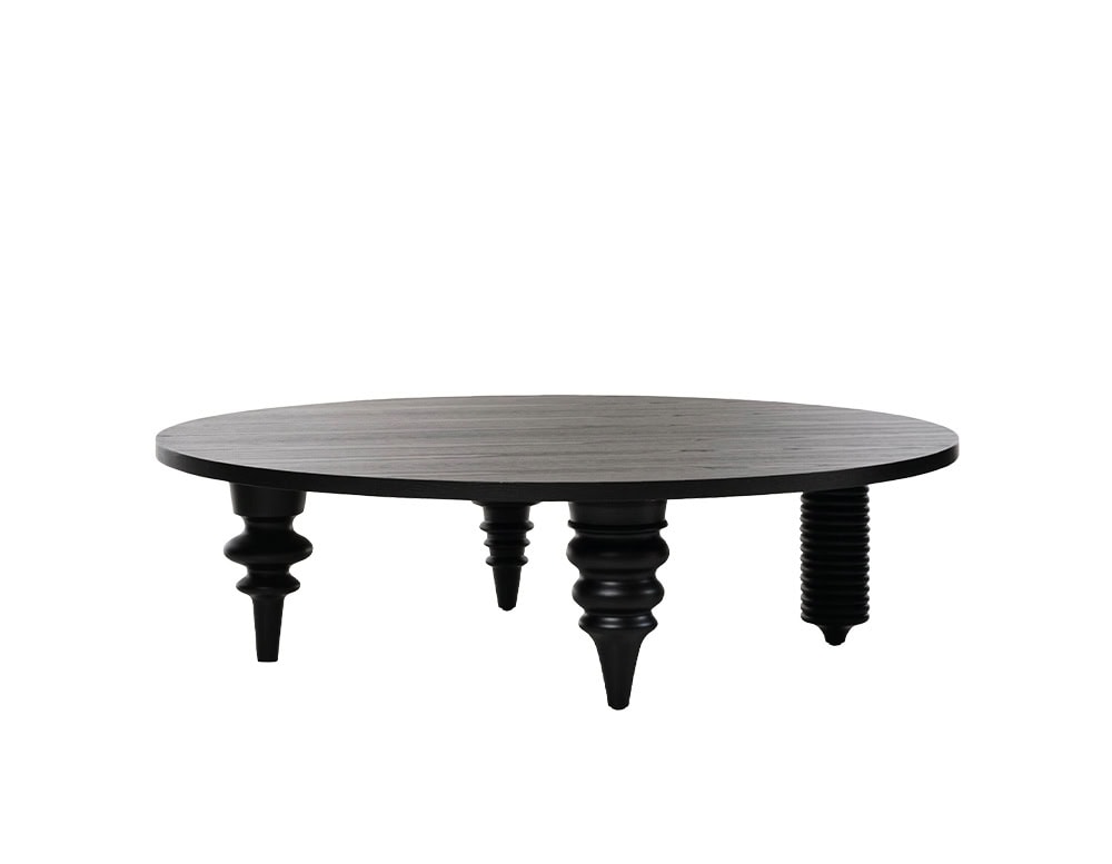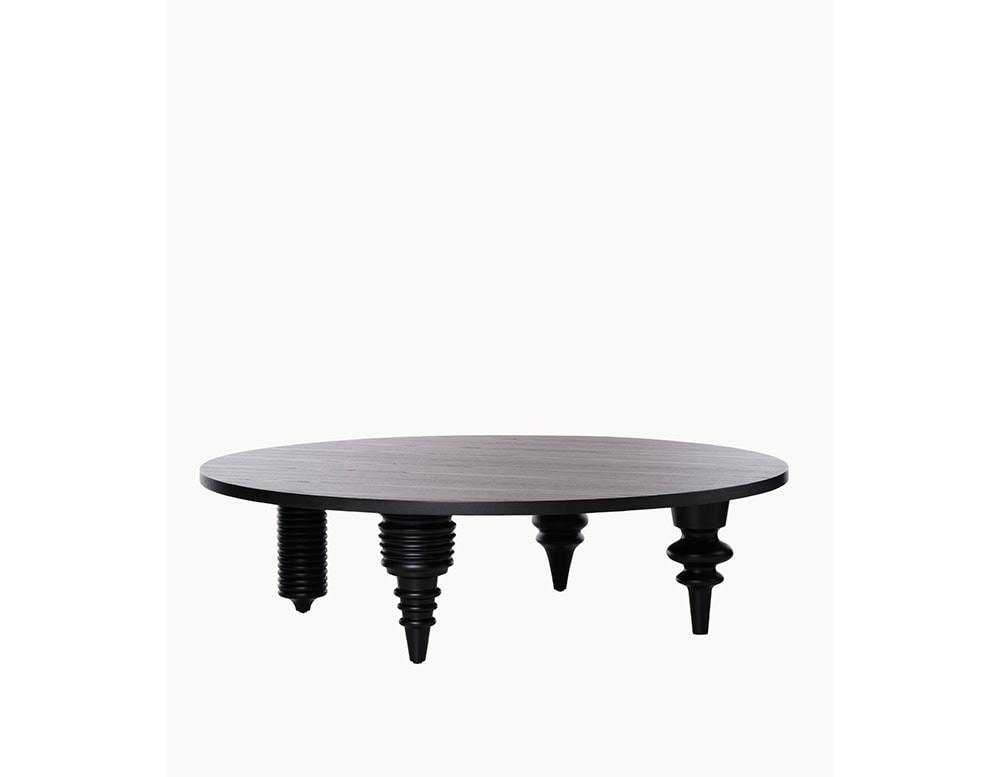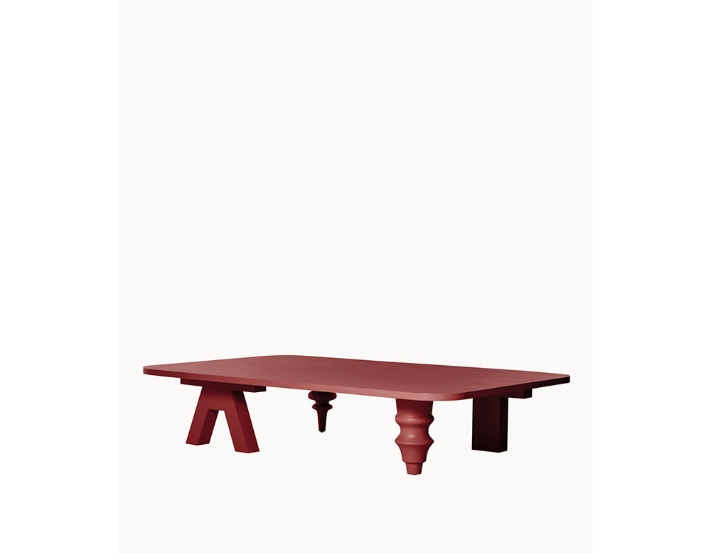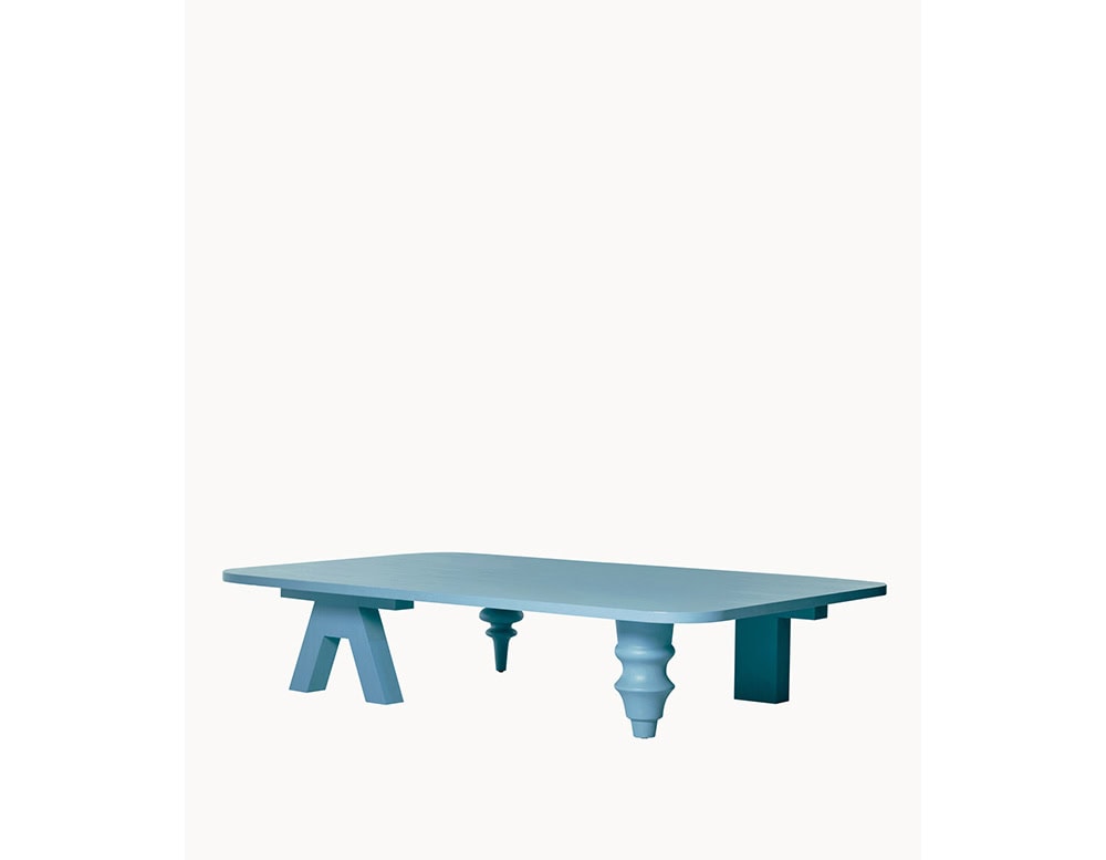 The Multileg Low Table is made in natural ash with a gloss lacquer topped with glass or with an open-pore painted finish. It is functional, unique and unmissable. Jaime Hayon brought the Multileg concept into the table with its customisable leg options balanced under round and rectangular top options. The geometric legs make a sculptural base system. One designed to be practical and amusing.