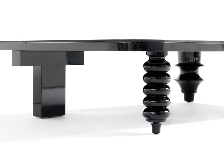 The Multileg Low Table is made in natural ash with a gloss lacquer topped with glass or with an open-pore painted finish. It is functional, unique and unmissable. Jaime Hayon brought the Multileg concept into the table with its customisable leg options balanced under round and rectangular top options. The geometric legs make a sculptural base system. One designed to be practical and amusing.