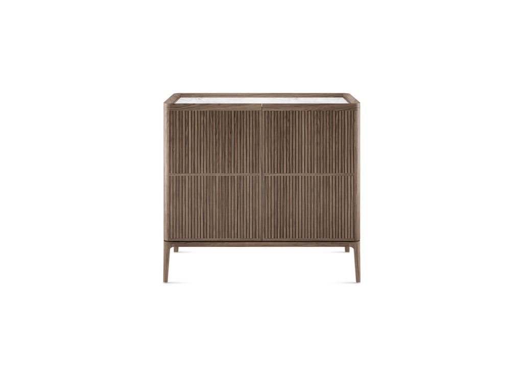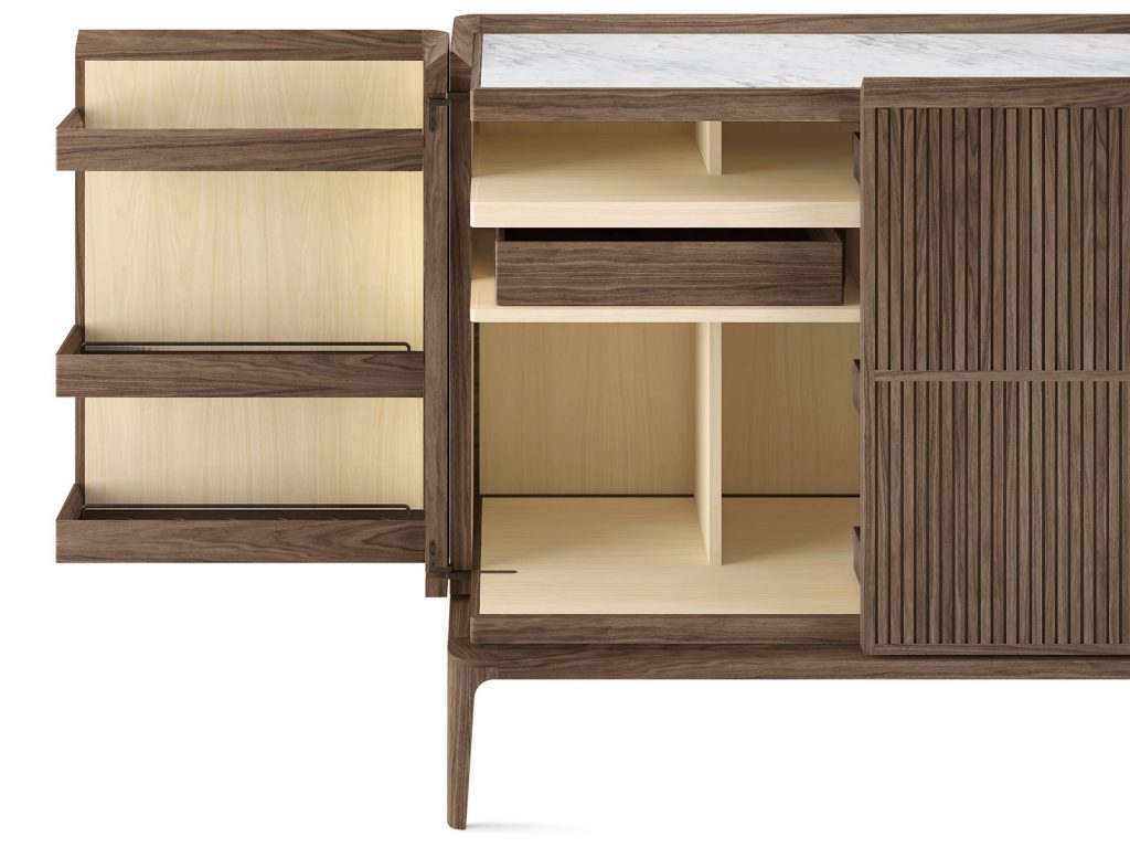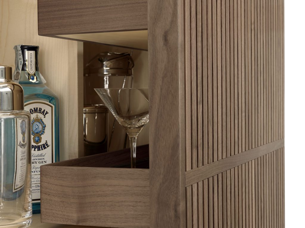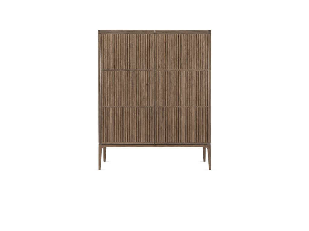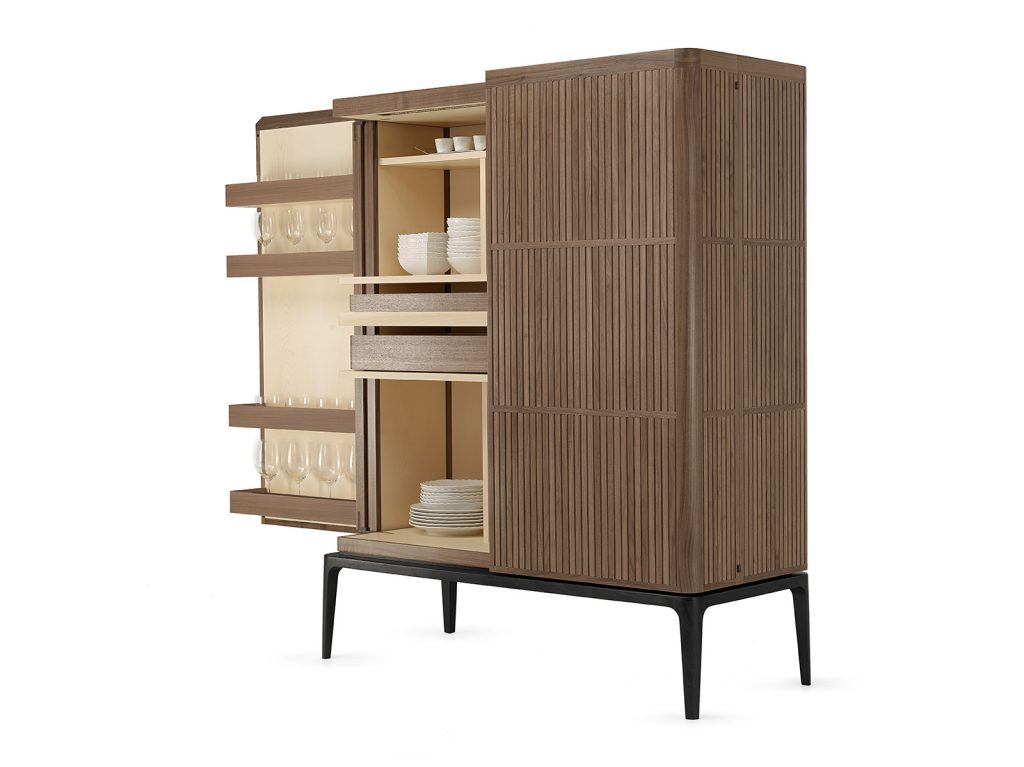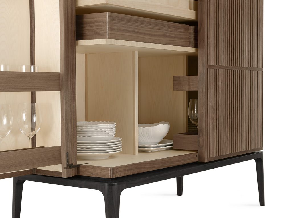 Cabinet made in solid american walnut and veneered plywood, sides and doors covered with solid american walnut wood strips, inside in maple wood, doors with 6 shelves for neverfull mid and 8 shelves for neverfull high, top in wood. On request internal accessories.
