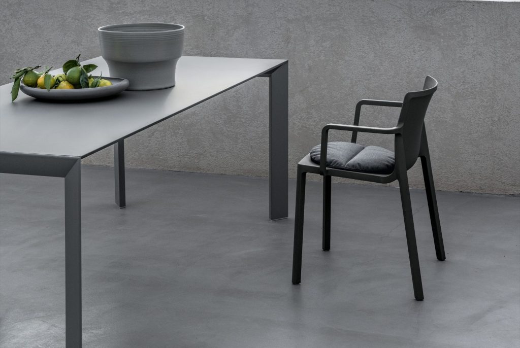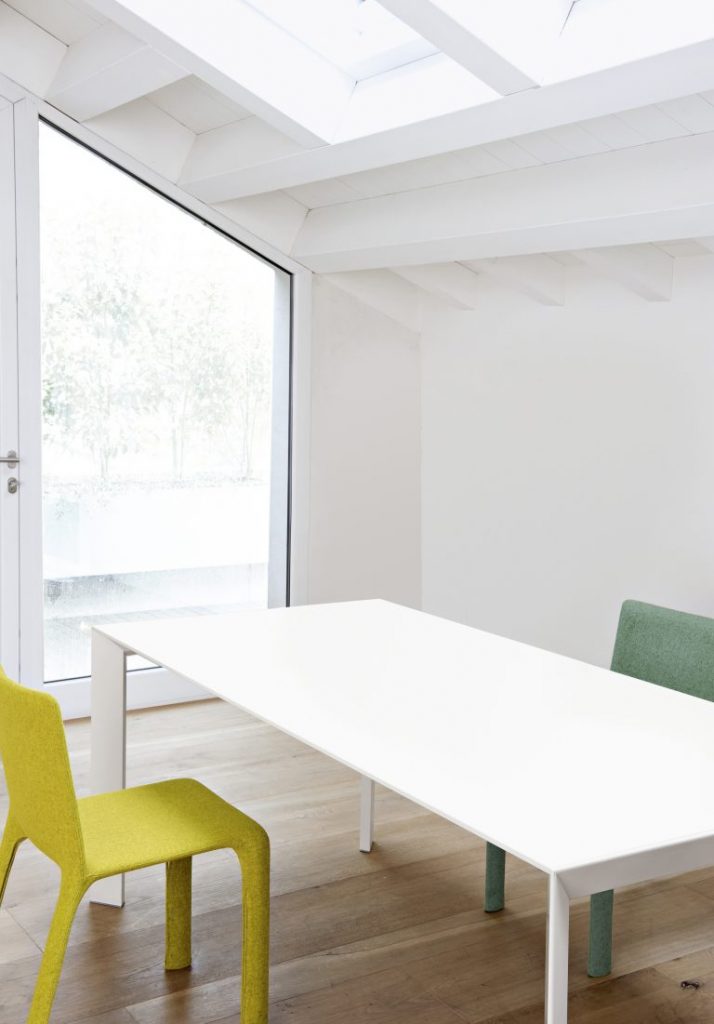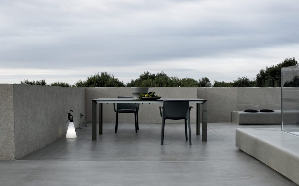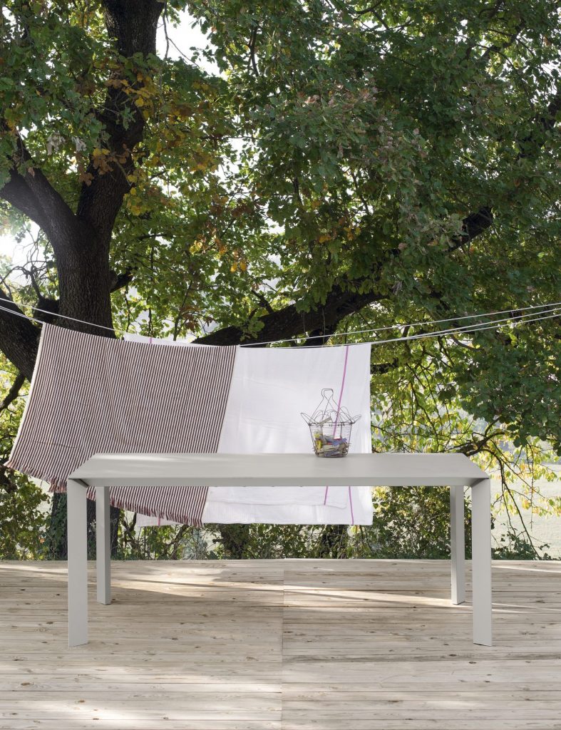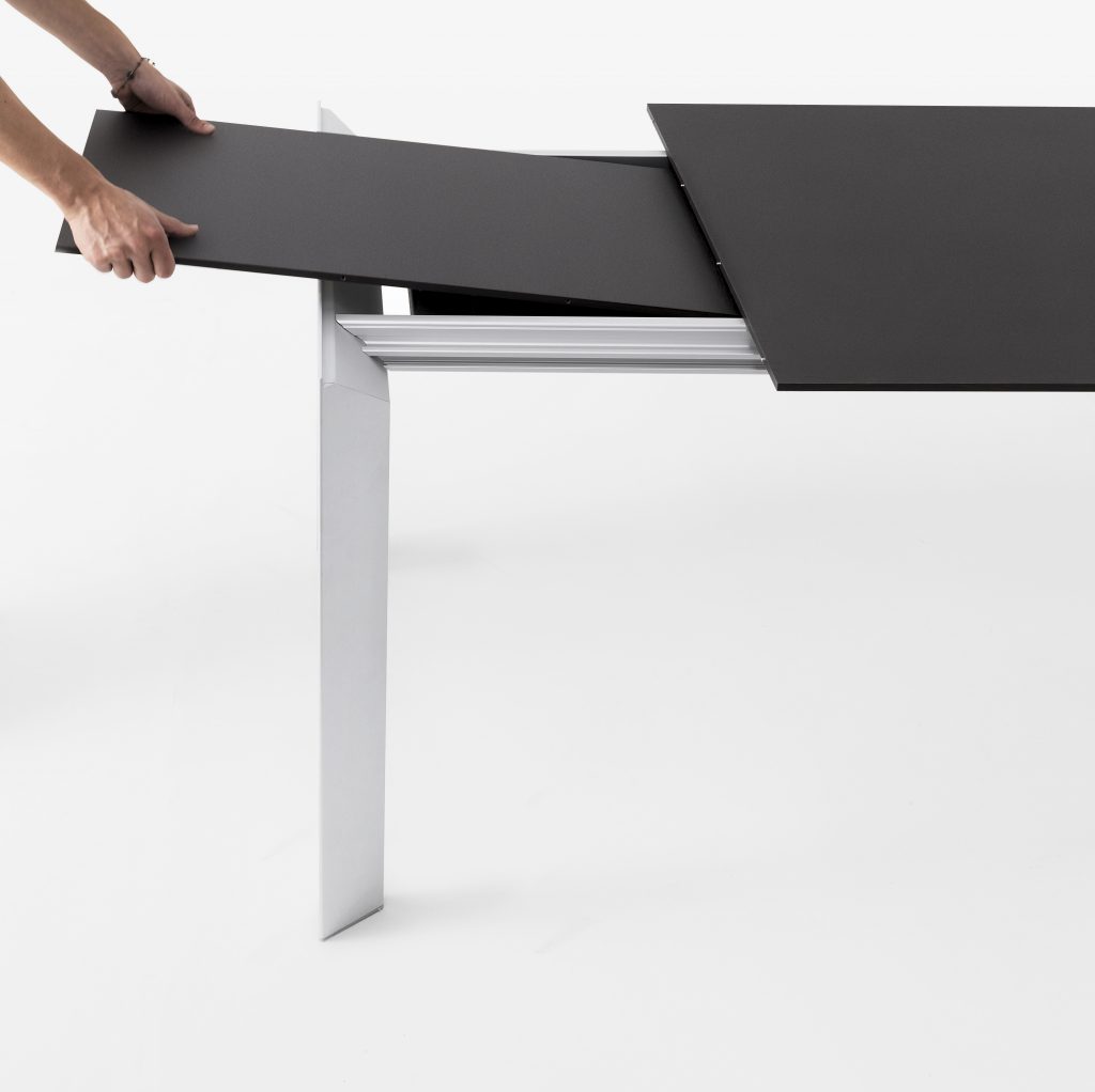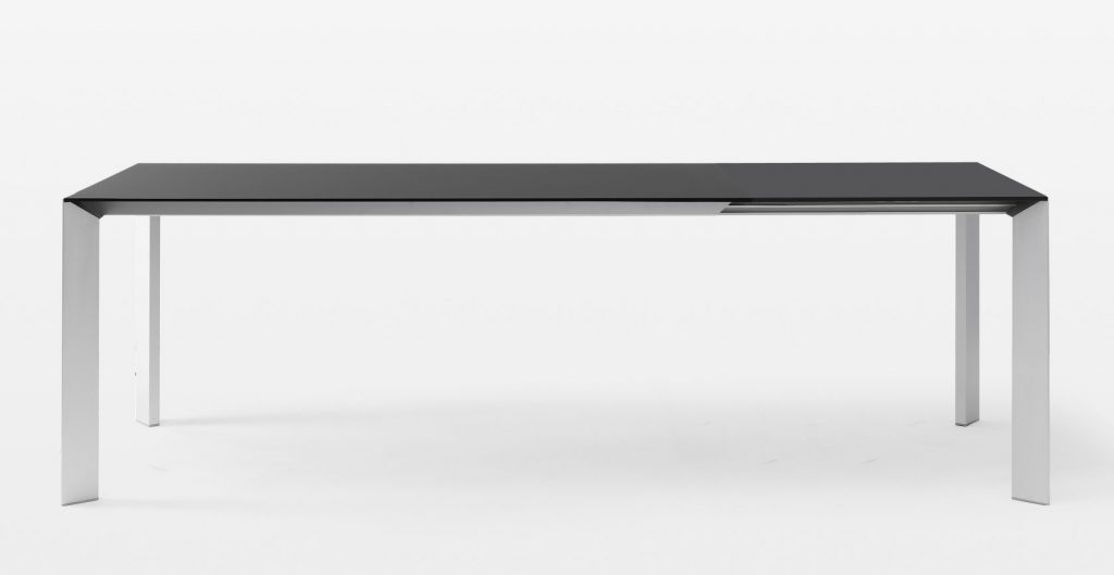 An evolution of Sushi, Nori is also a fixed or extendable table available in a wide range of sizes and finishes. But Nori has a different design for its legs, which have a sharp cross-section that gives them a more dynamic look. The top, made of cutting-edge materials such as Alucompact® and Pure-white laminates, Fenix-NTM®, DEKTON® by Cosentino, and gloss or matt glass, is narrow yet highly resistant. Thanks to the quality design project and the complex technology used, Nori tables are also available in large sizes without losing their lightness and stability.
