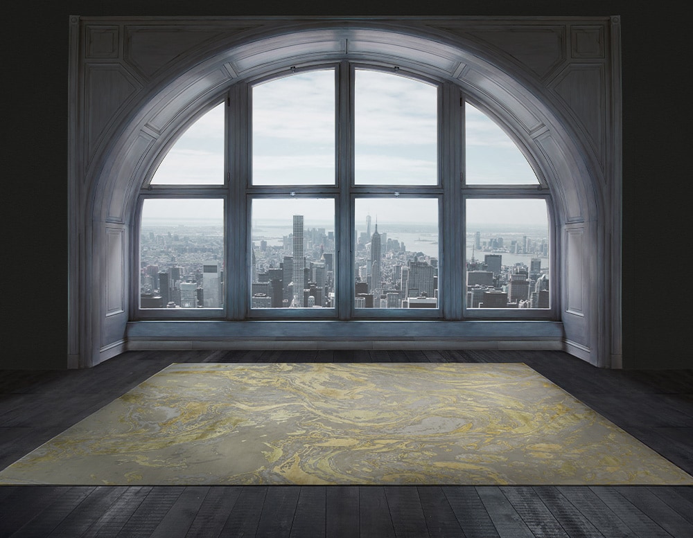 Obsidian is one of the area rugs designed by Gianfranco Ferre for Sahrai. This design features a subtle floral pattern blended onto the background thanks to tone-on-tone colours accentuated by the silk relief which also adds a particular sheen. This design comes in a Handknotted Wool and Silk Relief.