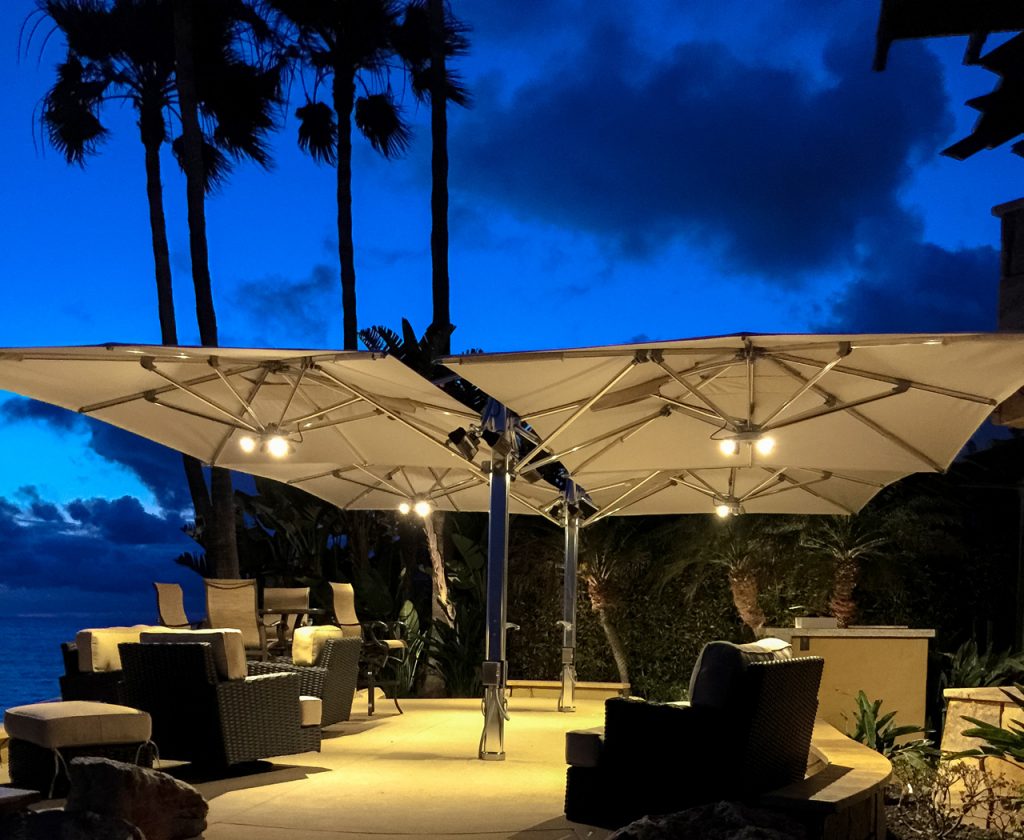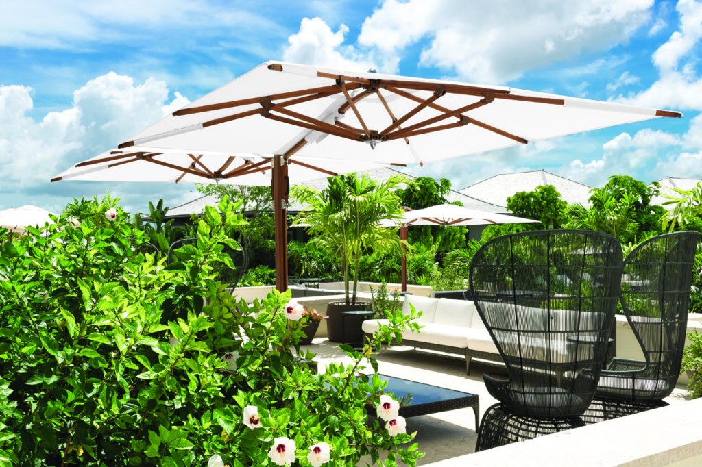 TUUCIs ocean master MAX dual cantilever is art and engineering harmonizing in a symphony of shade. This exquisite double umbrella provides a generously proportioned luxurious shade allowing for two unique outdoor living areas beneath one umbrella unit uninterrupted shade at its finest. Featuring a 4:1 tandem-retrieving crank system, the Dual Cantilever is simple to operate. The solo crank of this side post umbrella gently glides open both shades, offering a clear passage and uninterrupted ambiance. This dual cantilever is designed with an ultra-strong aluminum milled fulcrum and automatic telescoping mast to allow the canopy to close effortlessly over tables and chairs.