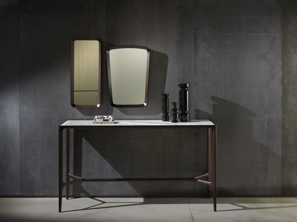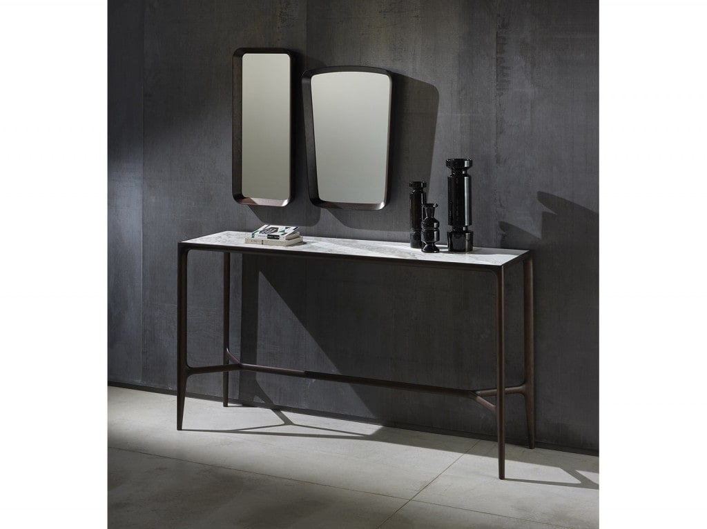 Console made in solid American walnut, with top in marble, wood or glass: transparent, bronzed or smoked.