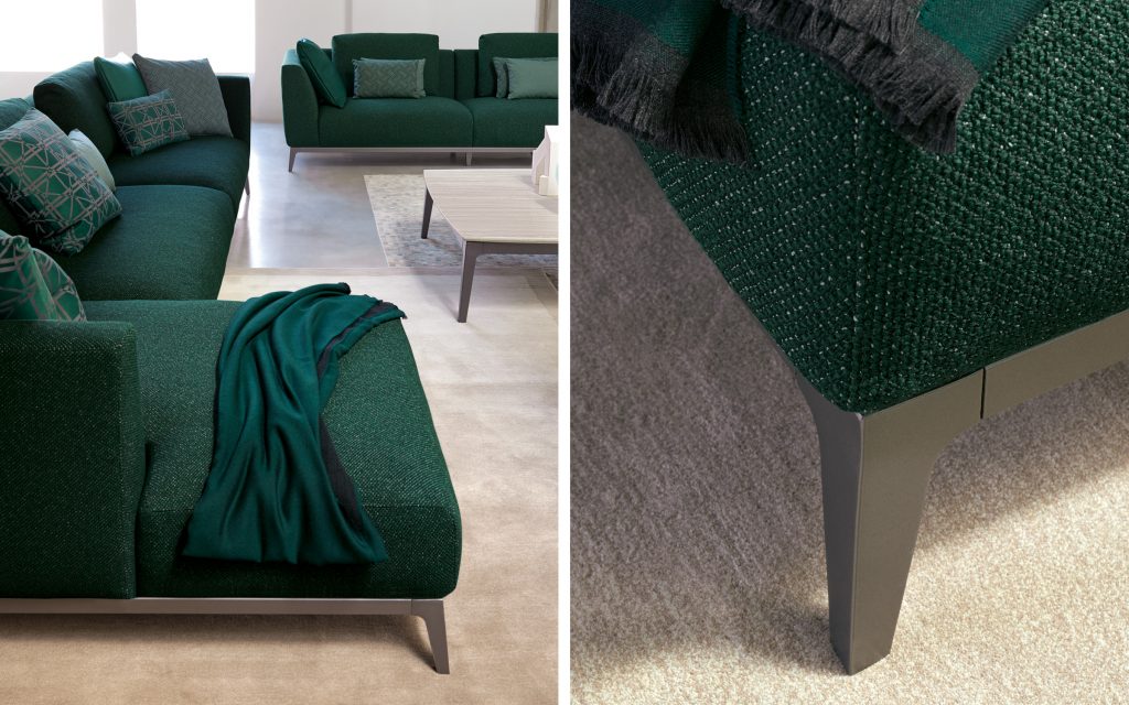 The sofa is large and spacious, extremely comfortable, with wonderful arrangement versatility, and it can join the small tables of the same collection.