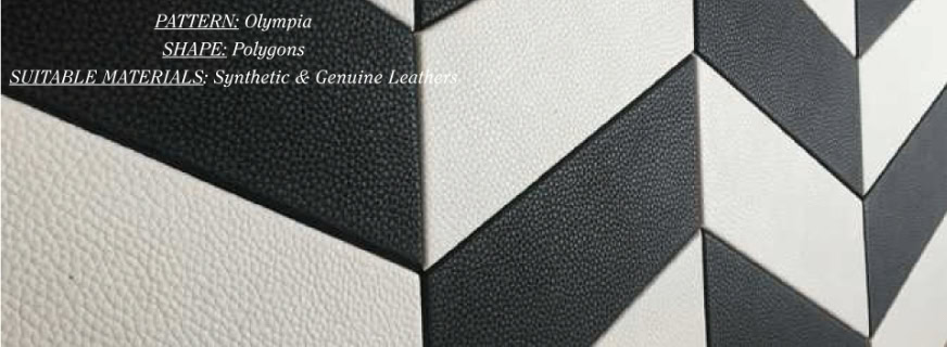Polygonal shaped leather tiles, available in synthetic and genuine leathers