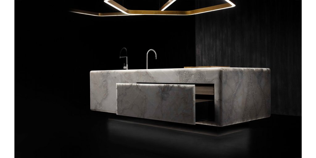 Oneon Kitchen, a unique piece of exquisite craftsmanship in available in stone or