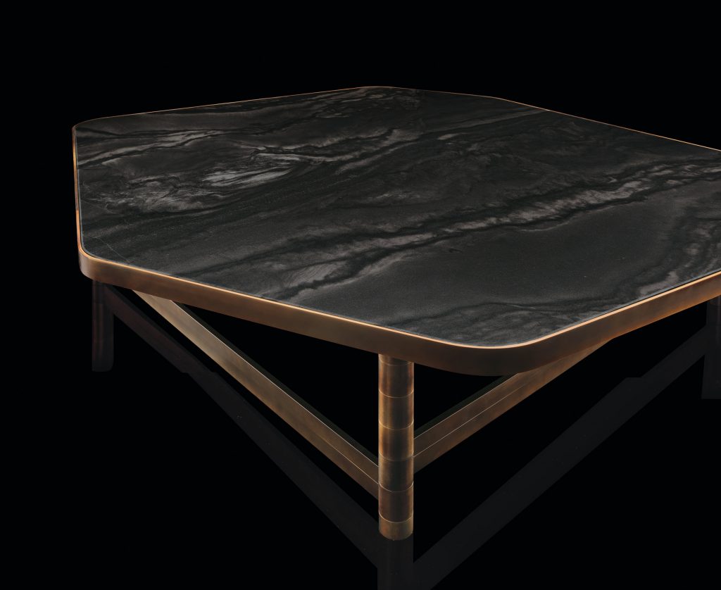 Structure 4 cm diameter brass tube with top belt in brass, h 4 cm, thick 0,4 cm. - Finish hand burnished brass using traditional techniques. - Wooden top in shaped solidwood - 2 cm thick. Heat treated woods as our samples and swamp oak oil finish based on natural wax and water. - Stone top thickness 2 cm. Marble stones and granites as per our samples.