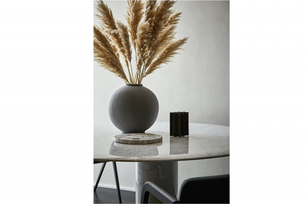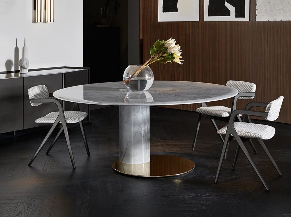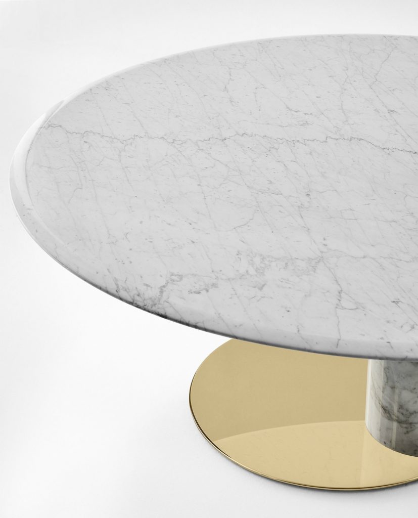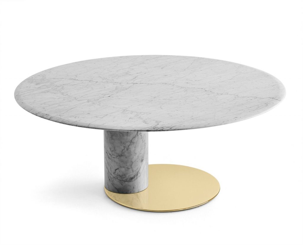 Table in Carrara white or Nero Marquinia marble. Brass-plated 'supermirror' stainless steel base.