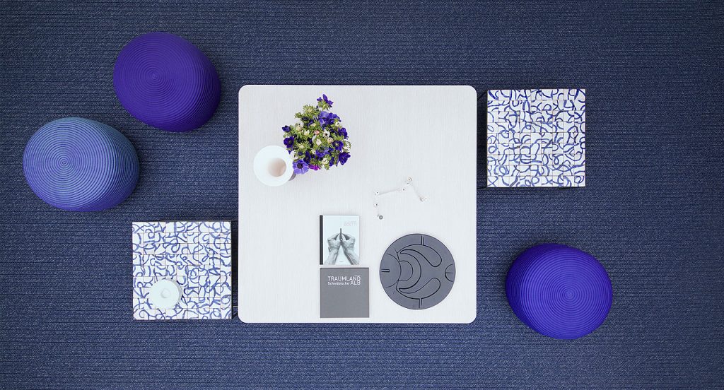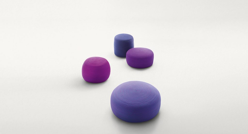 Series of pouf. The series Otto also includes an armchair and a large seating element featuring the same type of cover. - Padding: polystyrene spheres. - Padding cover: three dimensional polyester fabric. - Upholstery: removable cover made with Rope cord, sewn with a spiral-like pattern. - Note: the use of a Winter Set protection cover is recommended.