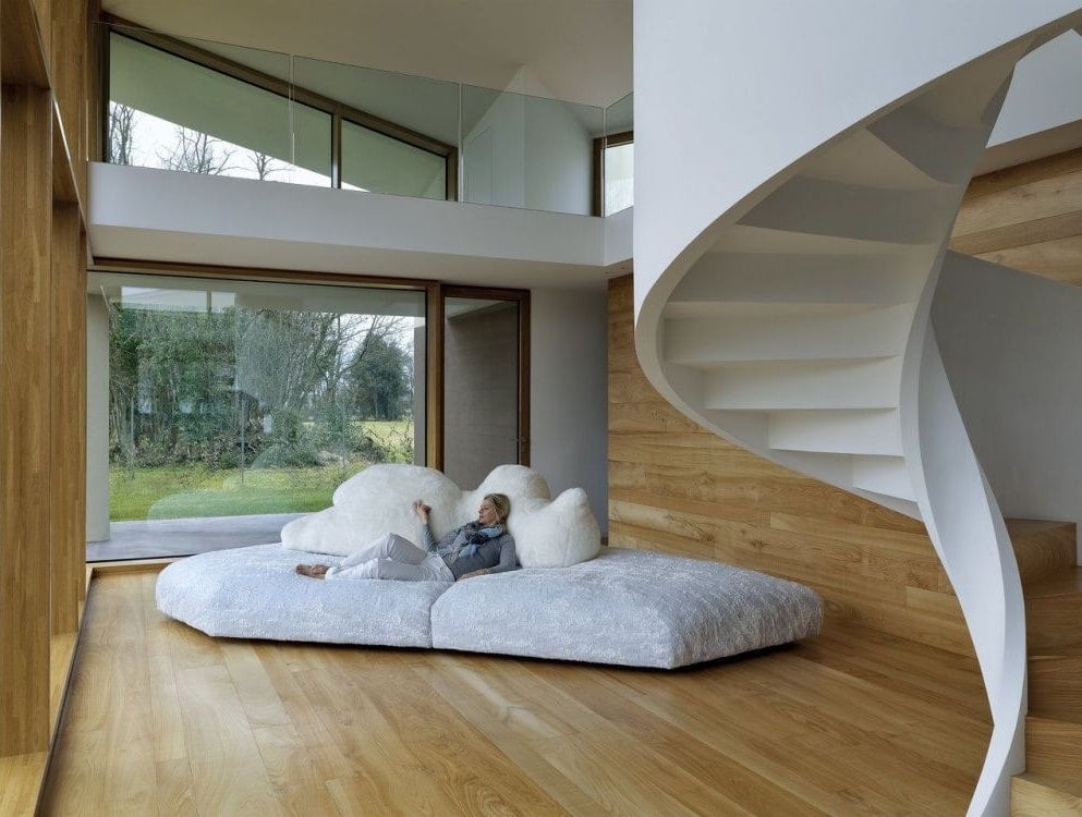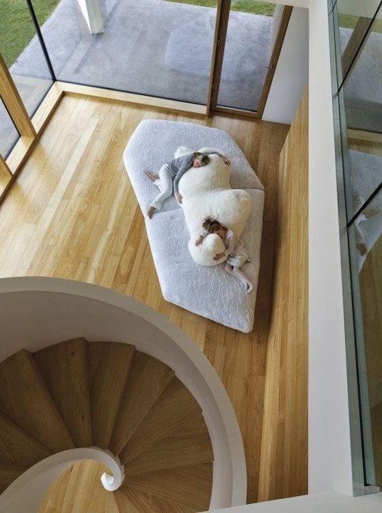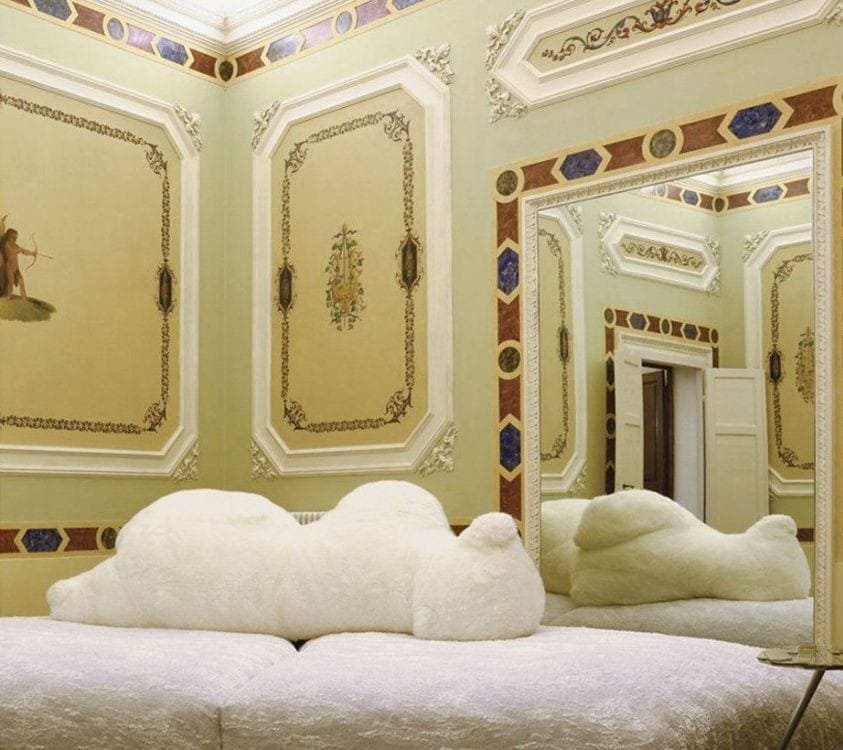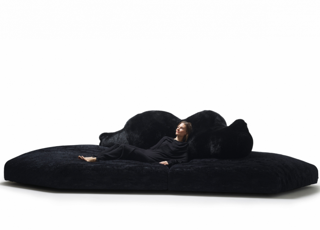 An icepack as a base. A bear lying on its side as a backrest. The seat is padded with Gellyfoam® and feather, covered with a special fabric with a texture similar to ice layers. The backrest is soft, made of polyester and covered with ecological fur. Leaning over, the big bear that supports, embraces and welcomes, for a relaxing finally freed from any constraint. The shape of the base, composed of two parts, is irregular, and corresponds to a right angle of three meters and seventy centimeters for two fifty. Available in black or white.