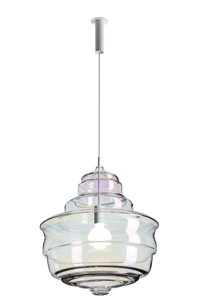 Jan Plechác and Henry Wielgus sketched the shape of the Lasvit Neverending Glory chandeliers by rotating the silhouette around its own axis. The large pieces of glass, for which even the wooden moulds are enormous are so demanding to produce that it would not be possible to create anything bigger. In the individual silhouettes, it is possible to recognize iconic chandeliers from five of the world's most eminent concert halls and theatres; La Scala in Milan, Palais Garnier in Paris, the Metropolitan Opera in New York, the Czech Republic's Estates Theater in Prague, and the Bolshoi Theater in Moscow. Hand blown Bohemian Crystal Glass