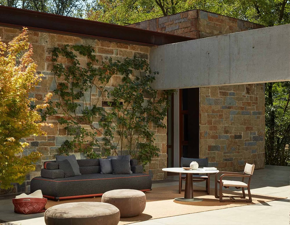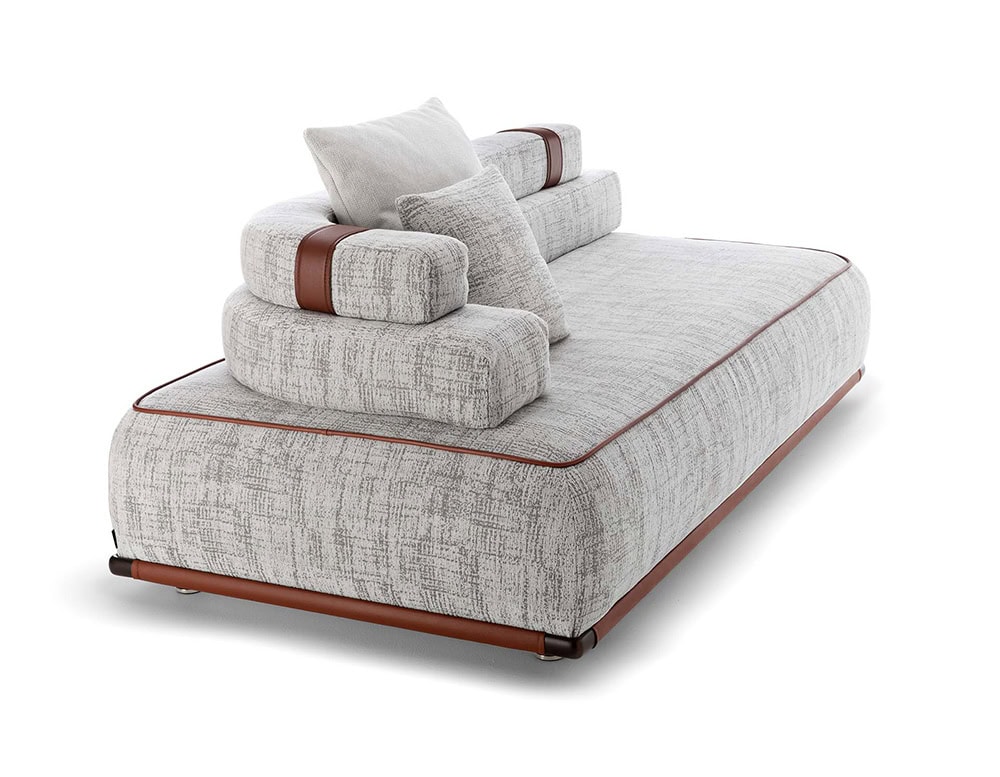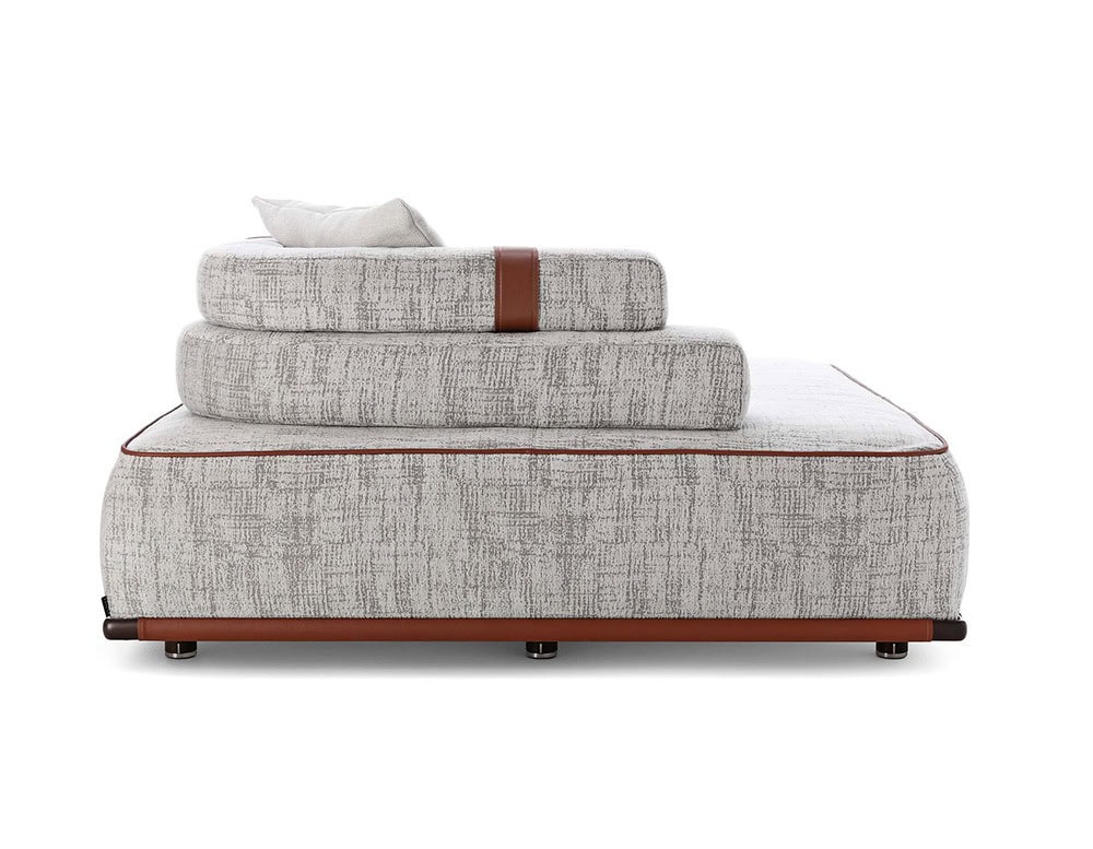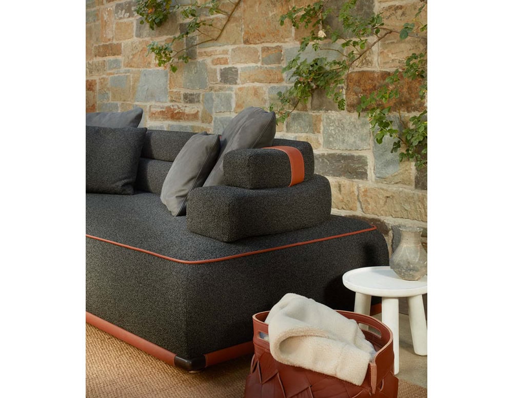 Each piece of Panarea Collection is designed to create infinite design games and customization, adapting to every need of space and comfort. The padded sections rest on a Sapelli mahogany structure with Barrique finish. The mahogany feet have a steel insert. The Sapelli mahogany structure, enriched with stainless steel inserts, gives an elegant functionality, in harmony with any landscape.