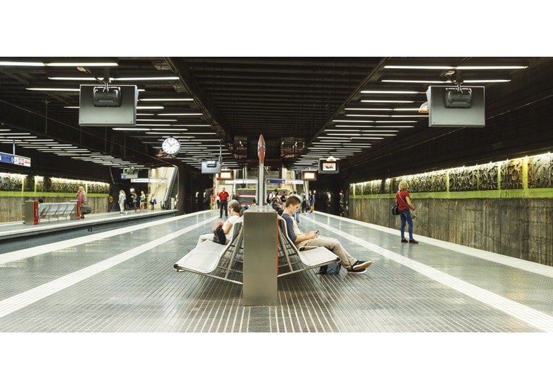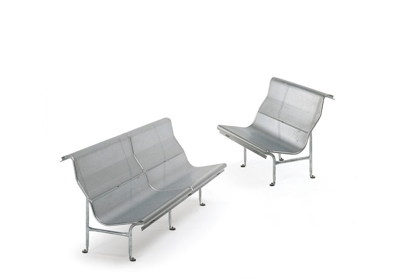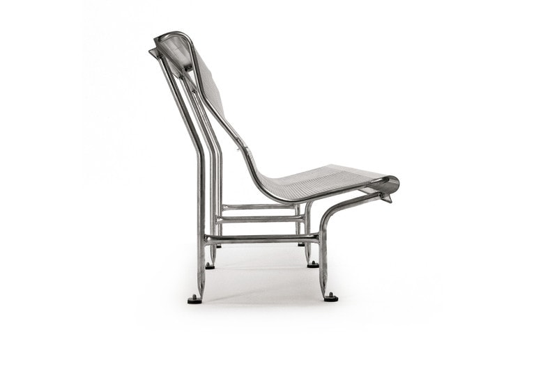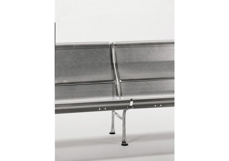 Legs intubular steel and seat in tubular steel chassis and covered with perforated steel sheet. All in silver grey texturized polyester resin paint finishing.