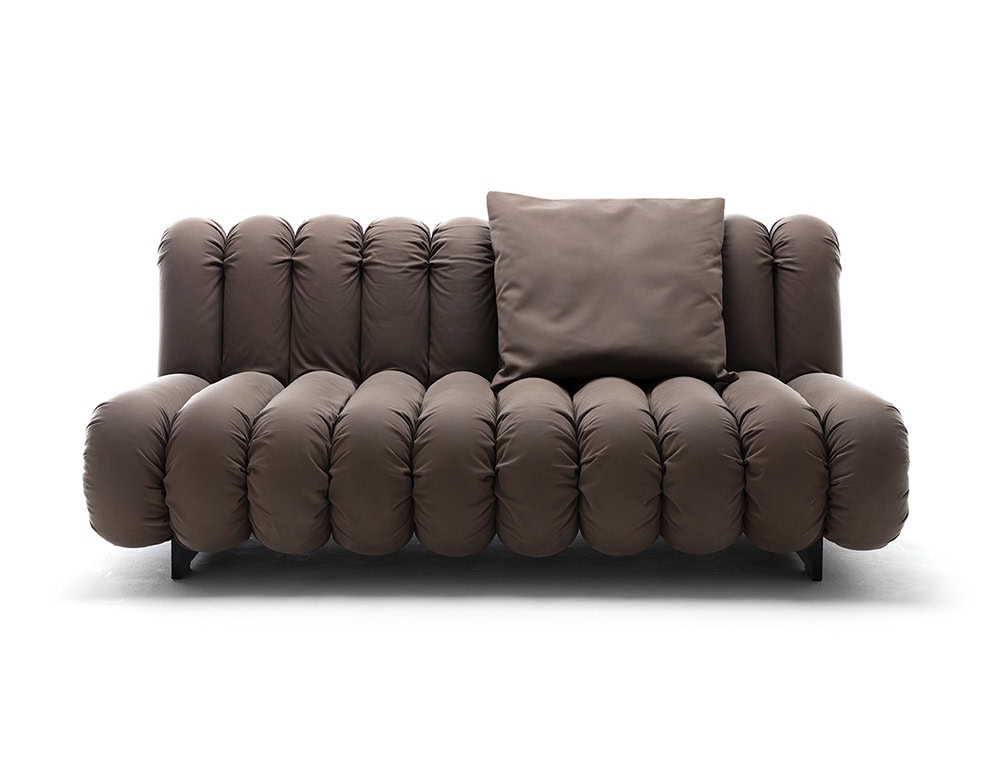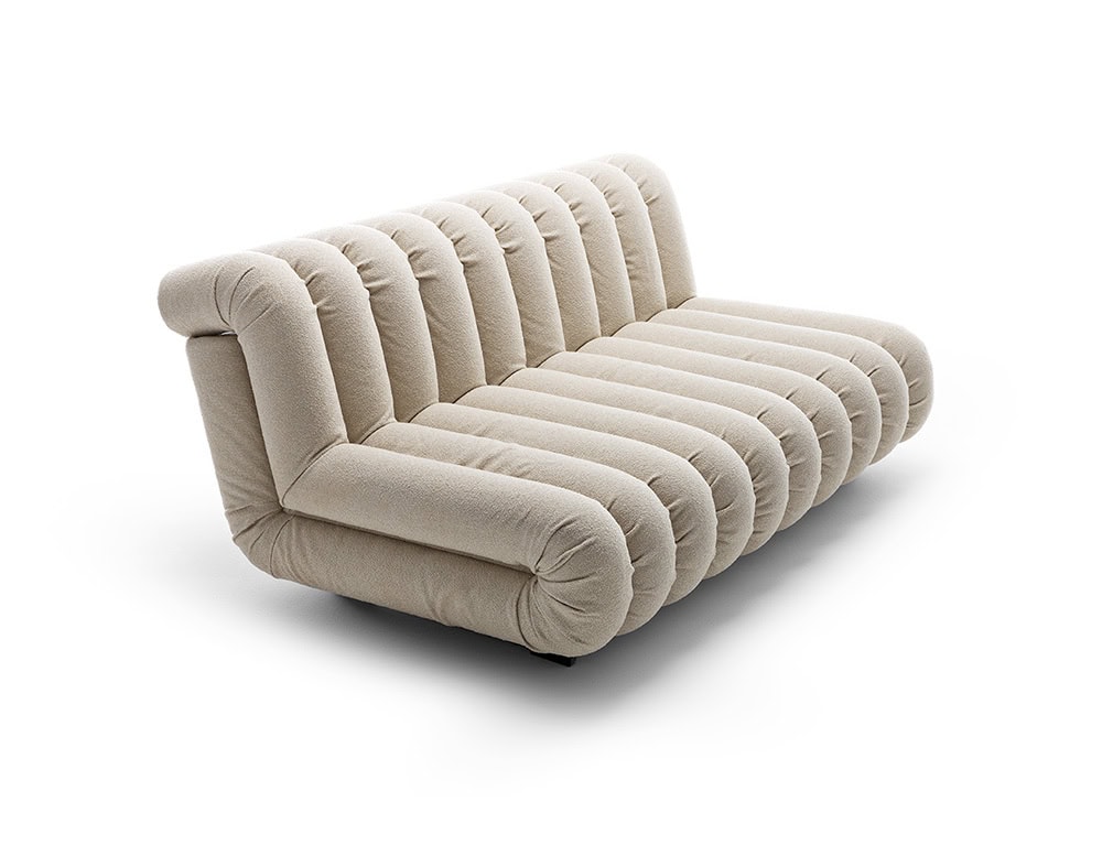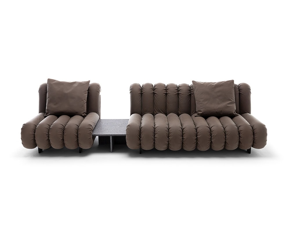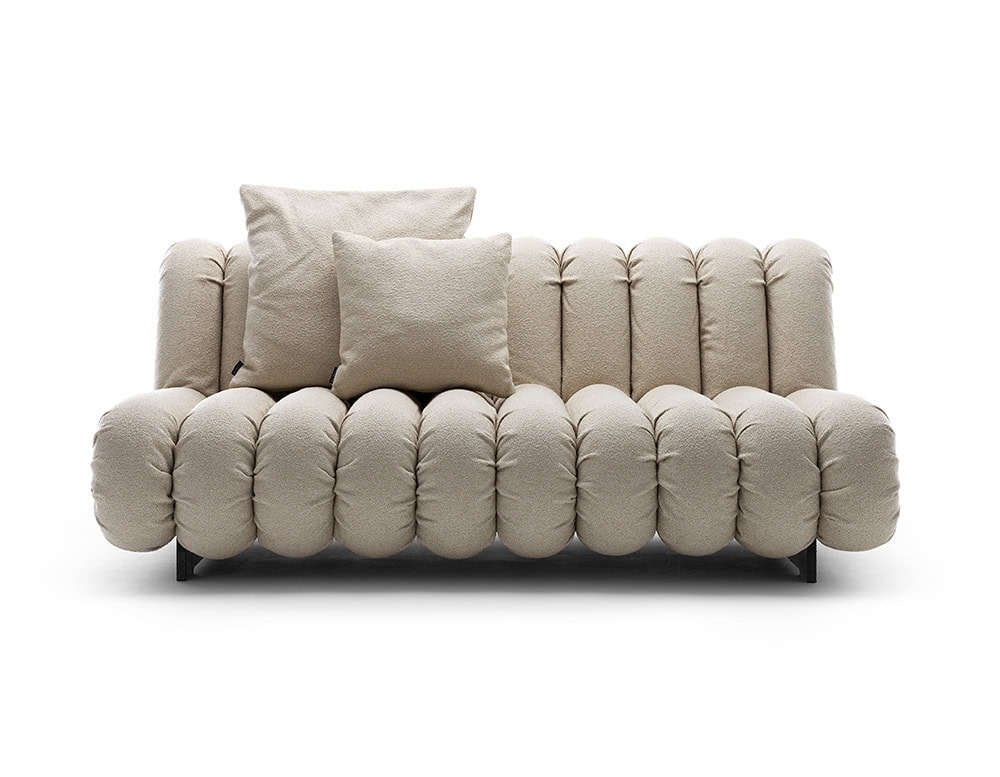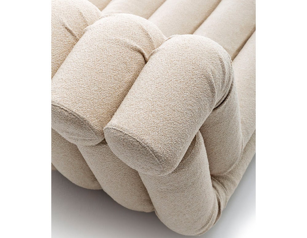 Its structure consists of five upholstered tubes arranged in a row, embodying themes of seriality and reproducibility. This iconic yet eclectic design can easily be paired with other furniture pieces.