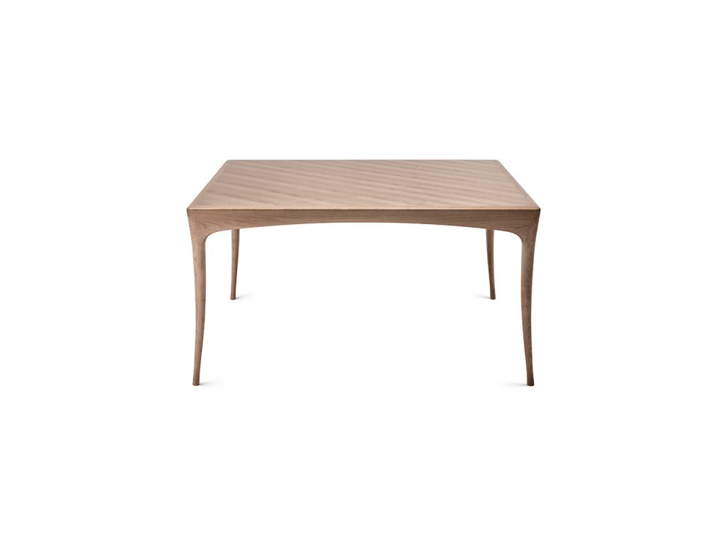 Square or rectangular table made in solid american walnut, top in veneered plywood, horizontal or diagonal wood grain.