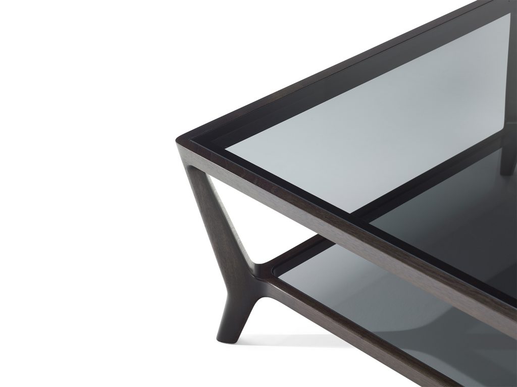Small table made in solid american walnut with double top in glass, wood or marble only for upper top.