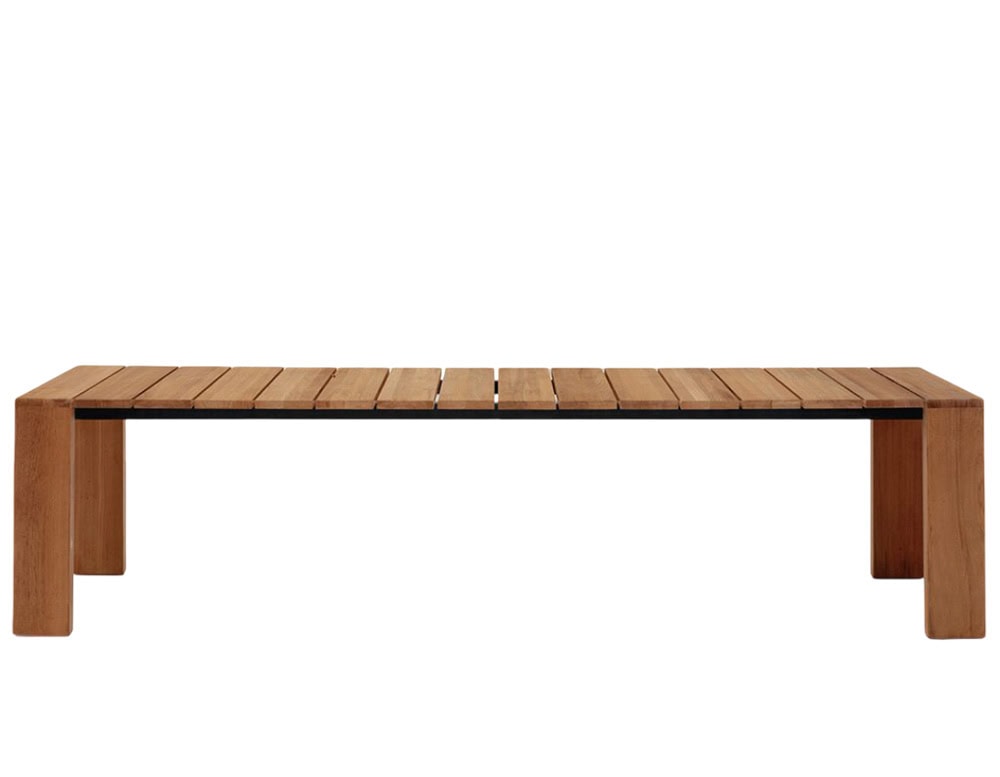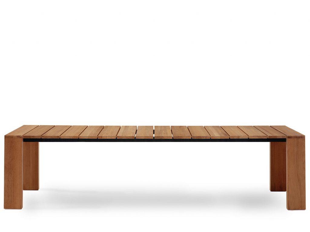 Teak slats, slightly distanced like the keys of a piano. It seems the simplest example of a flat surface which can find a place between the walls of a metropolitan apartment as among the a beautiful plants of a Mediterranean garden. Length 303cm - 119"1/4