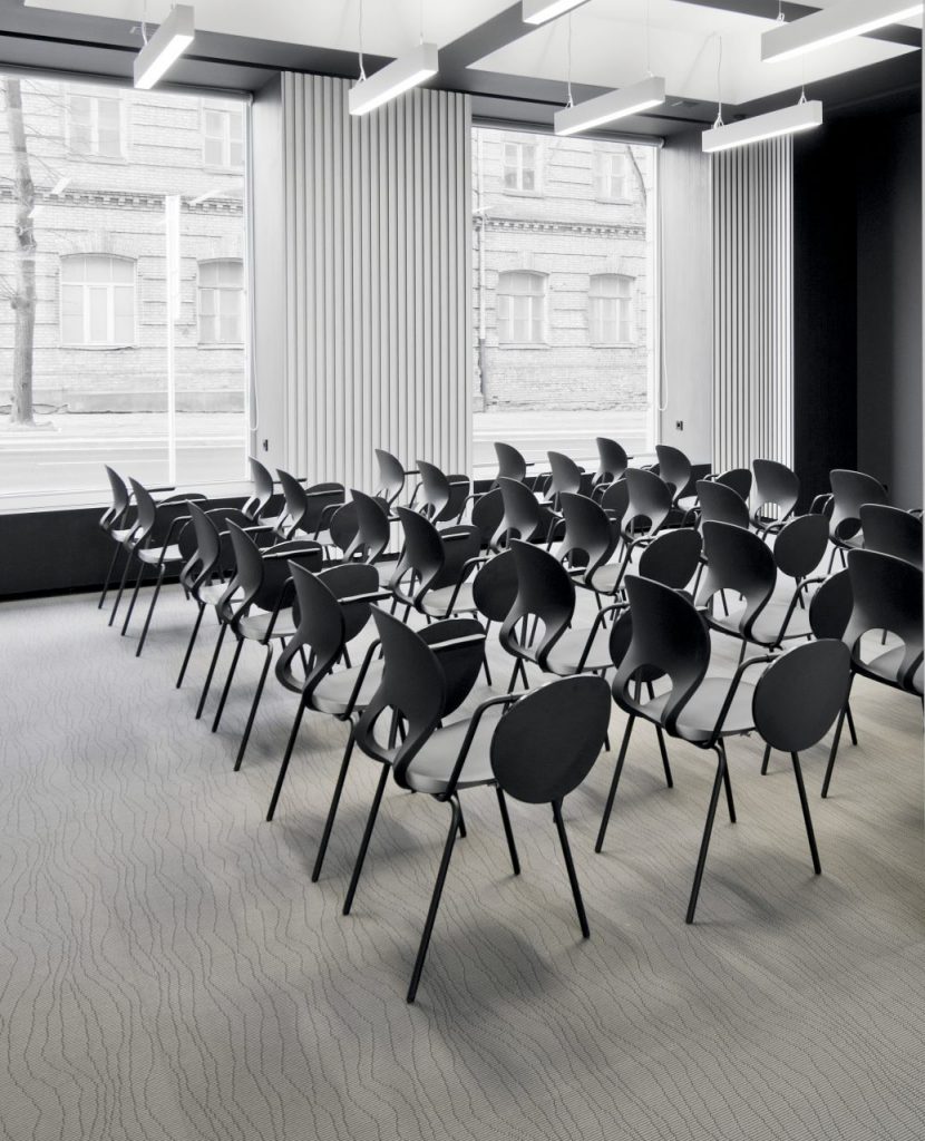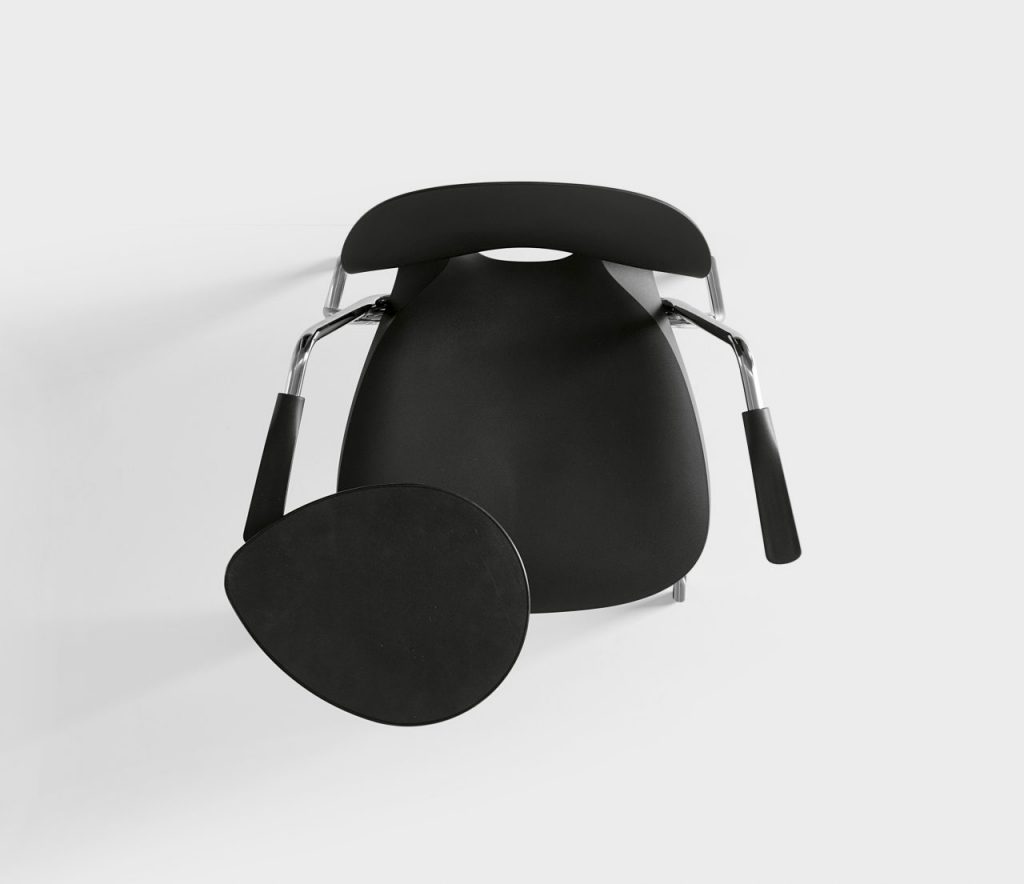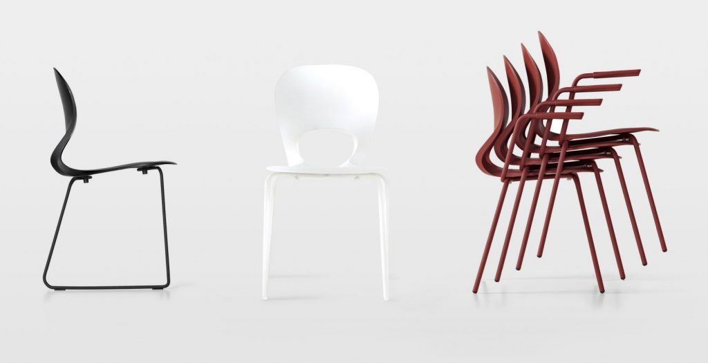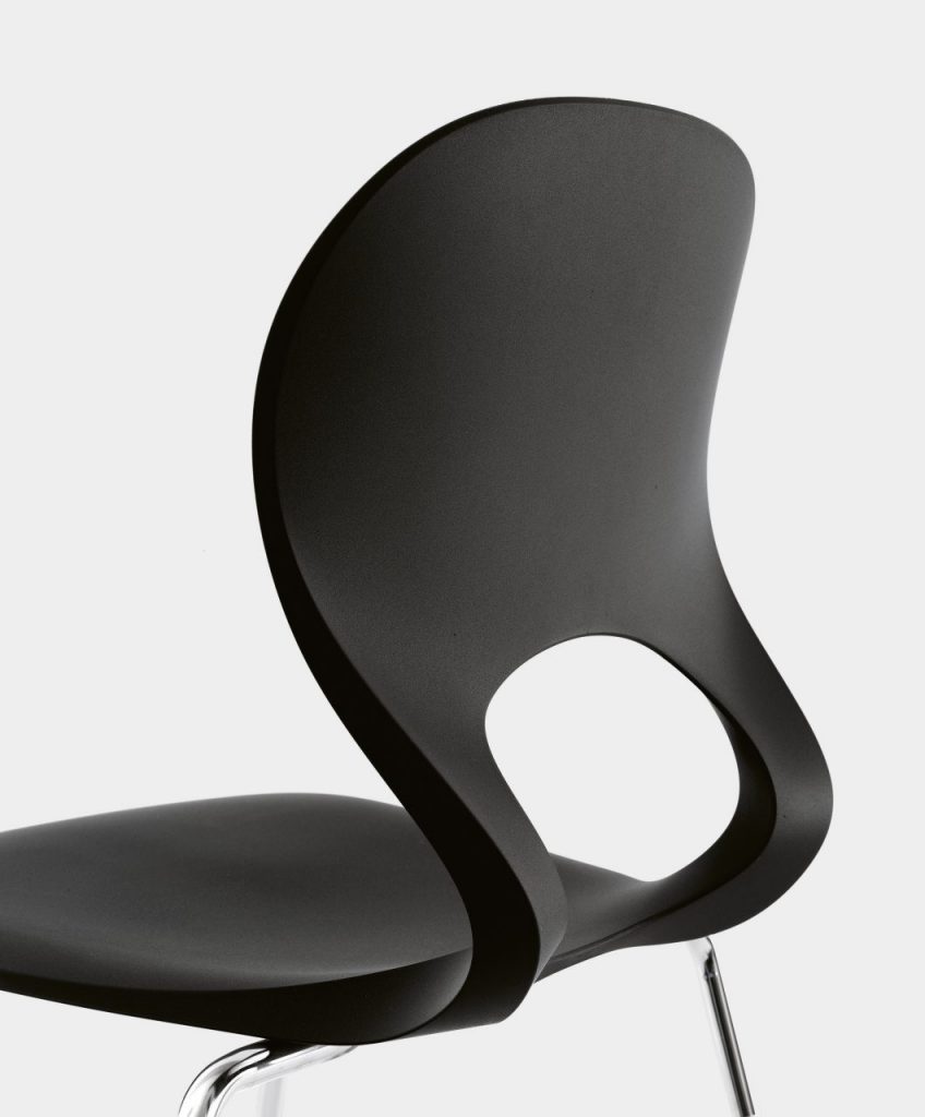 Versatility is the key word for the Pikaia collection designed by Angelo Natuzzi. The polyurethane structure has a particularly flexible ergonomic backrest that is ideal for supporting the back and adapting to the shape and weight of the body, whereas the stiffening ribs at the base give it strength and resistance. The collection includes various versions: the chair is available with legs, in stackable version, with a slide-frame base or with castors, whereas the chair with armrests can be combined with legs or castors. Suitable for both home and community environments, Pikaia is available in a variety of colours, also with a removable cushion for greater comfort.