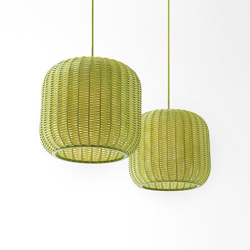 PILLOW is made of materials traditionally used by RODA, such as the natural teak for the eye-shaped base and Canatex in the sand colour for the covering, and features trimmings to define the sides of the lantern. A handle made with grey coloured belts allows the lanterns to be easily moved or hanged.