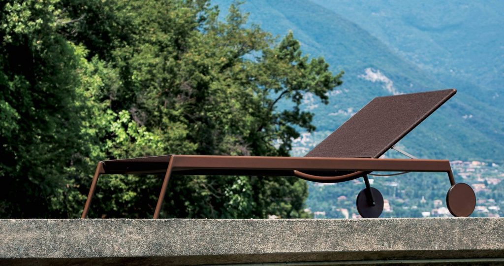 A stackable sunlounger, also in painted aluminum, completes the Piper range. It also comes in the same technical fabric color palette as the sofas.