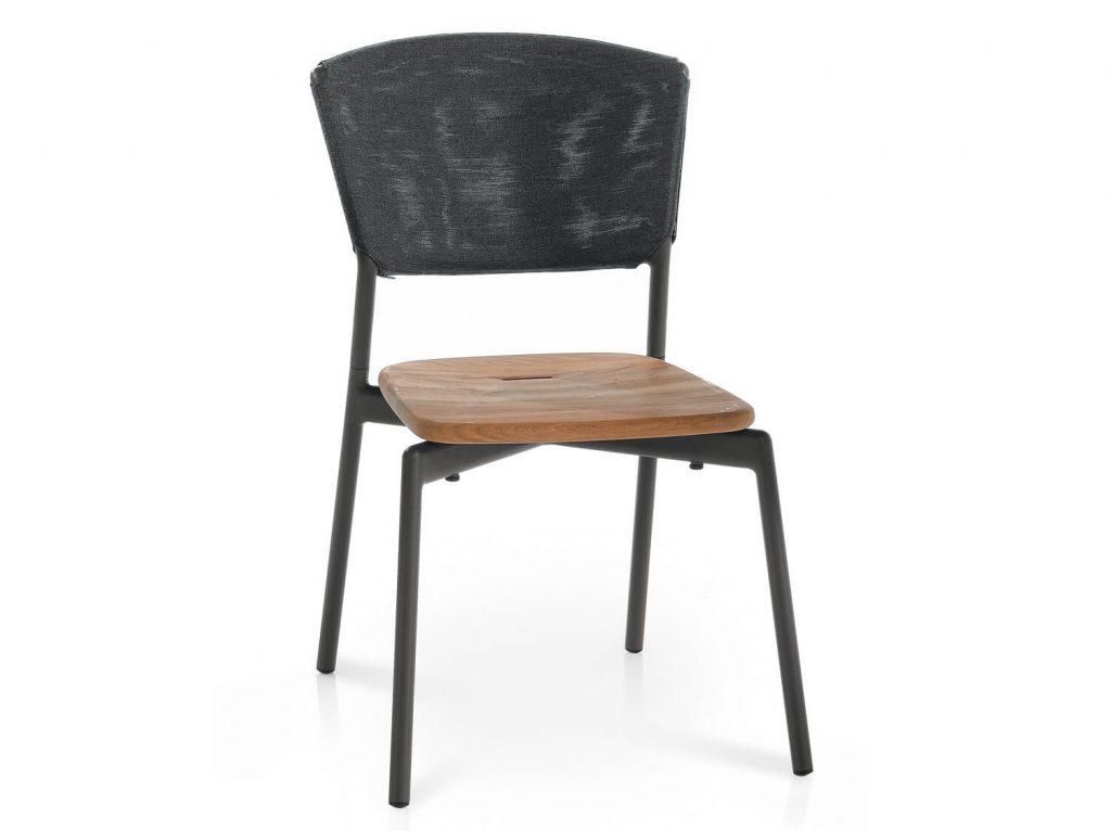 PIPER offers a variety of stackable outdoor chairs, with or without armrests, and dining armchairs characterized by a tubular aluminum structure that, for the PIPER 020 chair, matches a batyline lining. The combination of materials is further extended with the seat: softer in teak or more technical in polyurethane resin, with a mole color. The cushion, equipped with a fastening plug that fits into the drain hole of the seat, is made in the outdoor fabrics of the wide range proposed by RODA: a further touch of color to create unusual combinations but never discounted. The proposed finishing variants allow the PIPER chair to be easily combined with wooden or metal garden tables; stackability and easy maintenance make it a product suitable for restaurants or hotels outdoor furniture. Length 54cm - 21"1/4