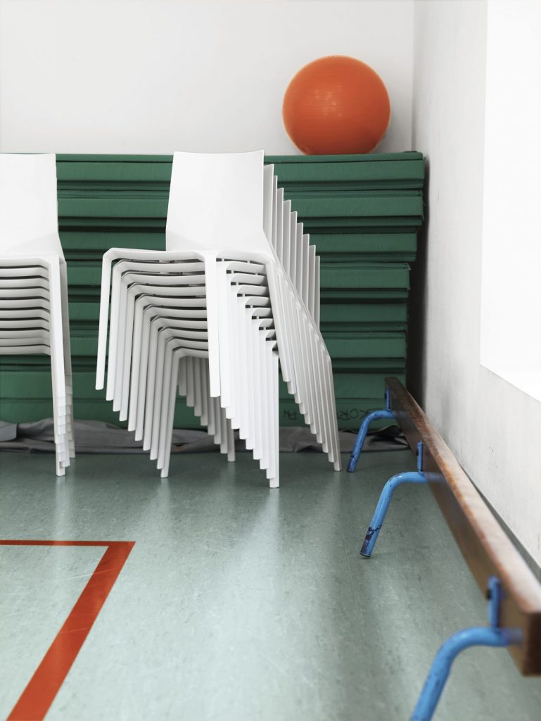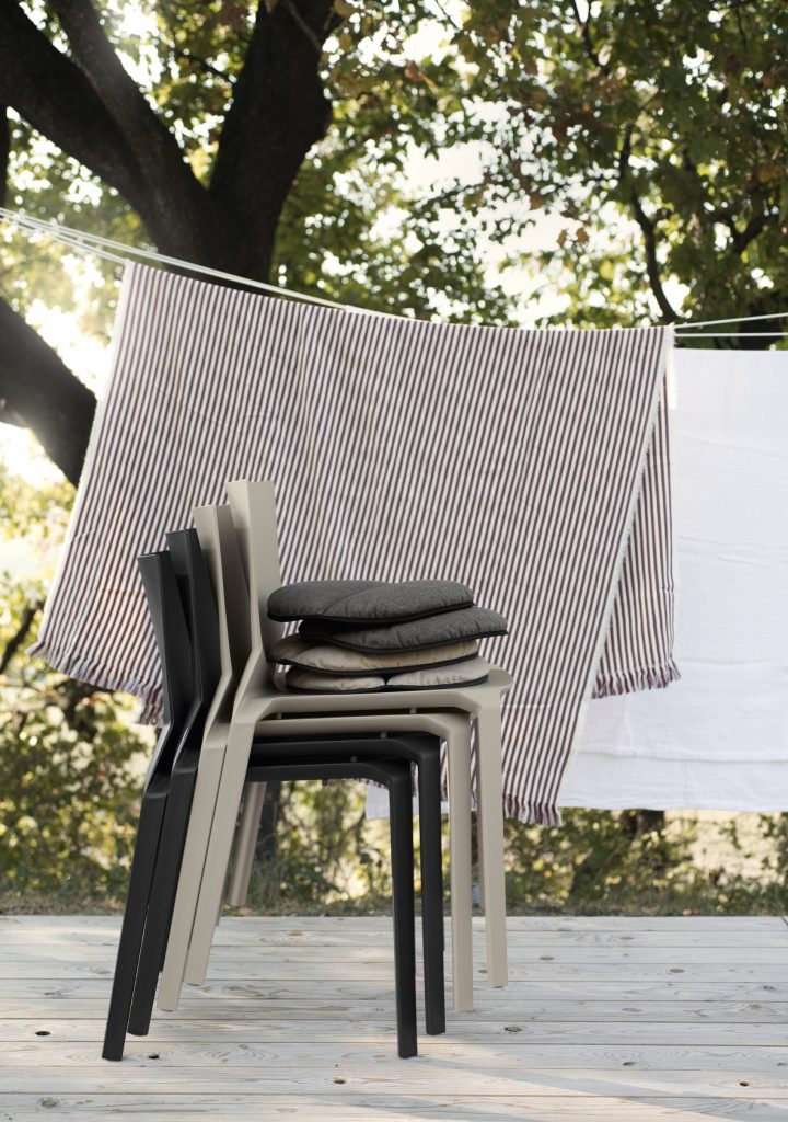 Hardwearing, versatile and affordable, Plana is a chair for all occasions. Designed by LucidiPevere, it is made of injection-moulded polypropylene reinforced with glass. Its lightness and colour make it the ideal chair for home spaces, whereas the removable cap in the seat for water drainage and the fact that it can be stacked, up to ten items, make it ideal for outdoor use. Plana is even more comfortable in the slightly padded version, with upholstery in synthetic leather or fabric, or combined with the Lips cushion.