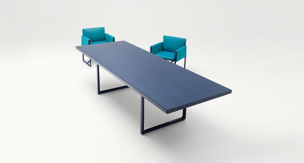 Dining table.- Structure: gloss-varnished aluminium, stainless steel adjustable spacers. - Top: fibreboard veneered and finished Mano Opaca. - Awards: The outdoor version of the Portofino series has been awarded the GOOD DESIGN AWARDS 2016 in the Furniture category.