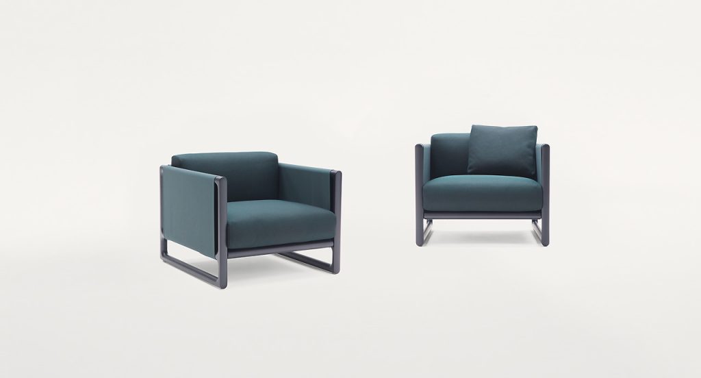 Armchair. Portofino also includes a chair, a little armchair a deck chair, a XL deck chair and a stool with folding structure, a sofa and dining and bistrot tables with stone top. - Structure: natural or dark dayed locust heartwood treated with acrylic wax; seat frame in steel provided with elastic belts. Plastic spacers. - Upholstery: removable, in Madras or Tamil fabric - Seat and back cushions: polyester fiber with polyurethane insert. - Seat and back cushions upholstery: removable, in Madras, Tamil, Rope T, Brio or Thea fabric. - Notes: The series Portofino includes also a tray which, positioned on the stool structure, turns the stool into a side table. We recommend the use of the Winter Set protection cover. Awards: The Portofino series has been awarded the GOOD DESIGN AWARDS 2016 in the Furniture category.