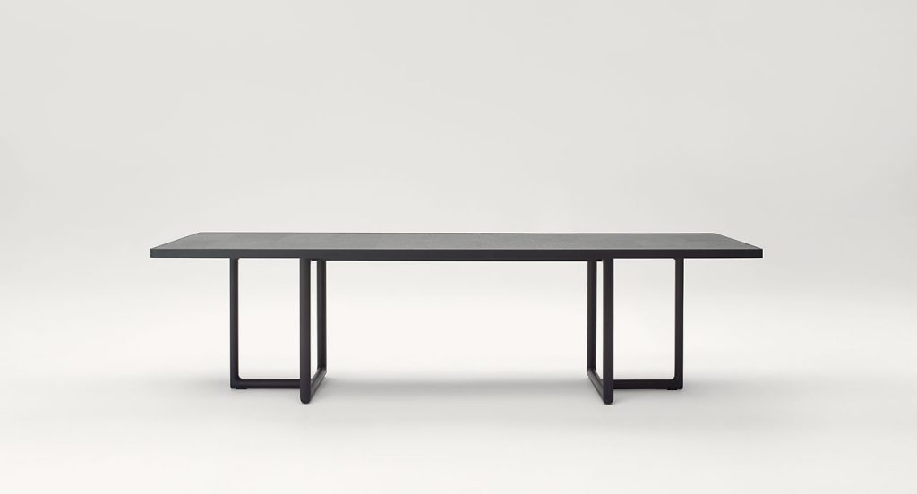Large dining tables with stone top. Portofino also includes: a chair with armrests, a little armchair, a stool, a deck chair and a XL deck chair with folding structure, an armchair, a sofa and a bistrot table with stone top. Structure: natural or dark dyed locust heartwood treated with acrylic wax. Plastic spacers. - Top: Pietra di Comiso or natural lava stone matching the colour of the structure. - Notes: Pietra di Comiso and lava stone are natural materials that can present color differences between one slab and another and, consequently, different shades of the hand-finished elements that make up the tabletops in the collection. These haracteristics are linked to the very nature of the materials and are considered qualities able to make each table unique and exclusive. The series Portofino includes also a tray which, positioned on the stool structure, turns the stool into a side table. This product can be used also in interior environments. We recommend the use of the Winter Set protection cover. - Awards: The Portofino series has been awarded the GOOD DESIGN AWARDS 2016 in the Furniture category.