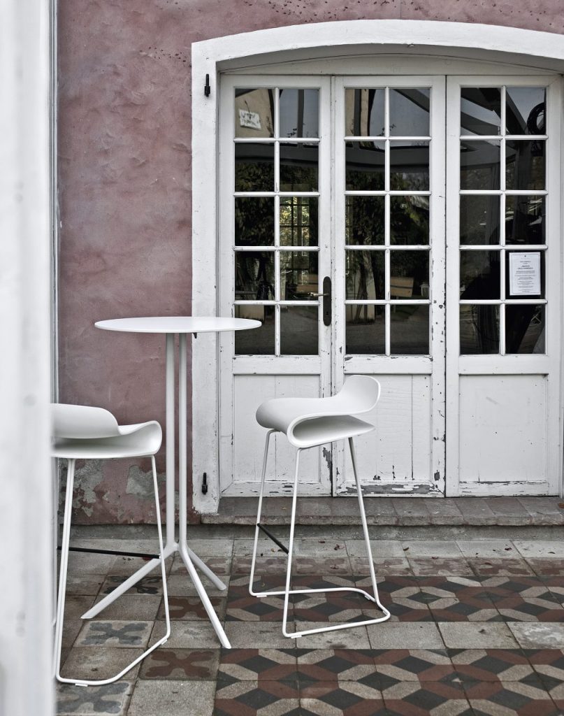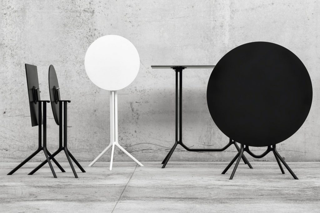 The name of this occasional table simply reveals its inspiration: the shape of a hens foot, re?ected in the lines of its pedestal and legs. Patrick Norguet seriously puts this clever idea into practice by designing a practical and versatile collection of tables and occasional tables. Lightweight and durable, they are ideal for use in a variety of contexts. Poule is made of black or white painted aluminium. It has a round, square or rectangular top in laminate or Fenix-NTM®. Poule is also available in a folding version so that it can be stored when not required and where space is limited.