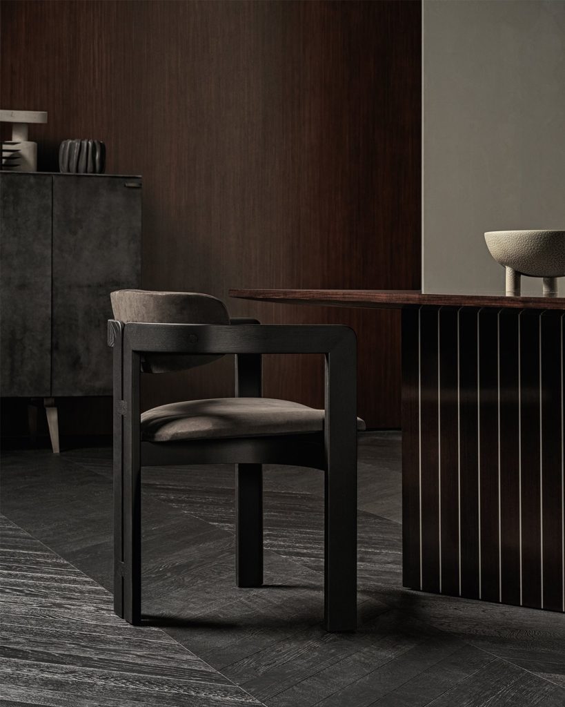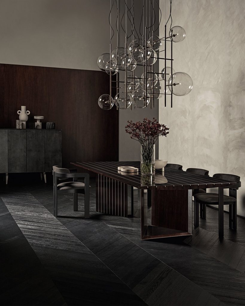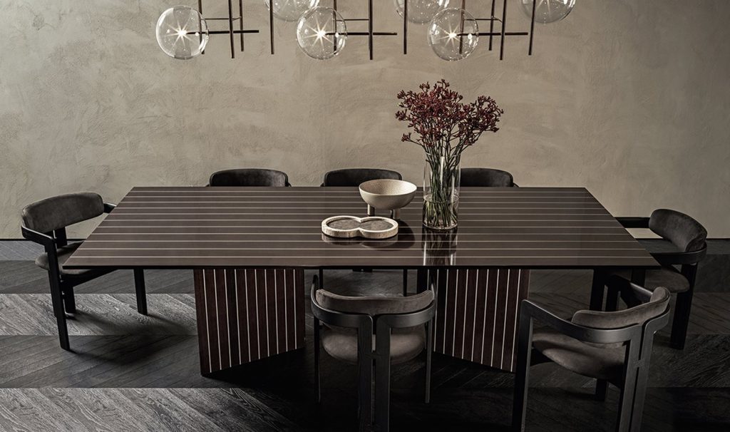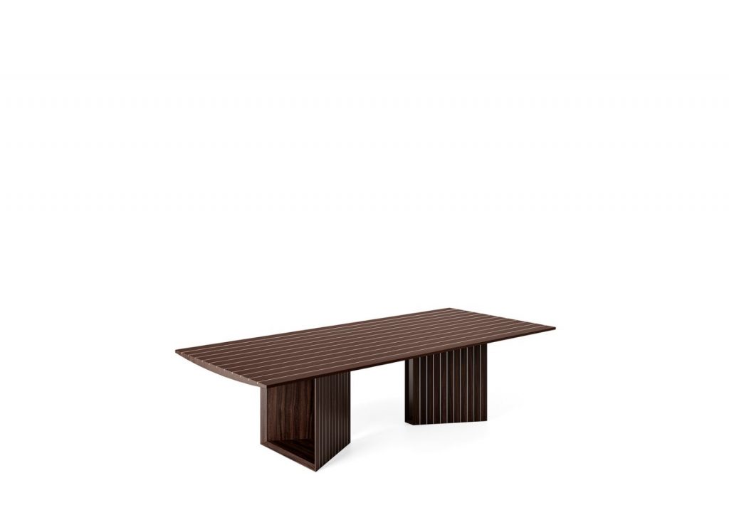 Table with top and bases in India rosewood laid in line with aluminium.