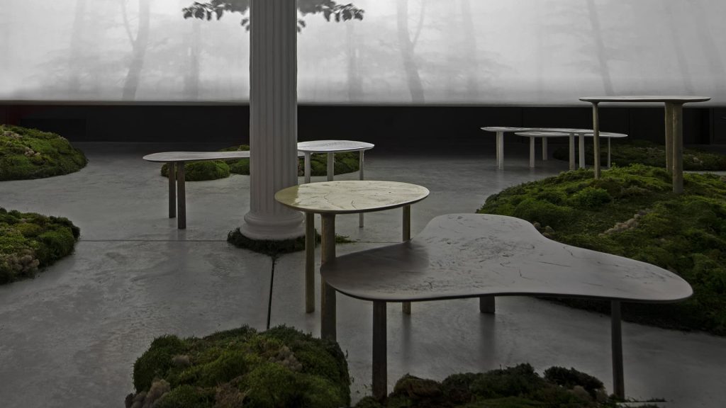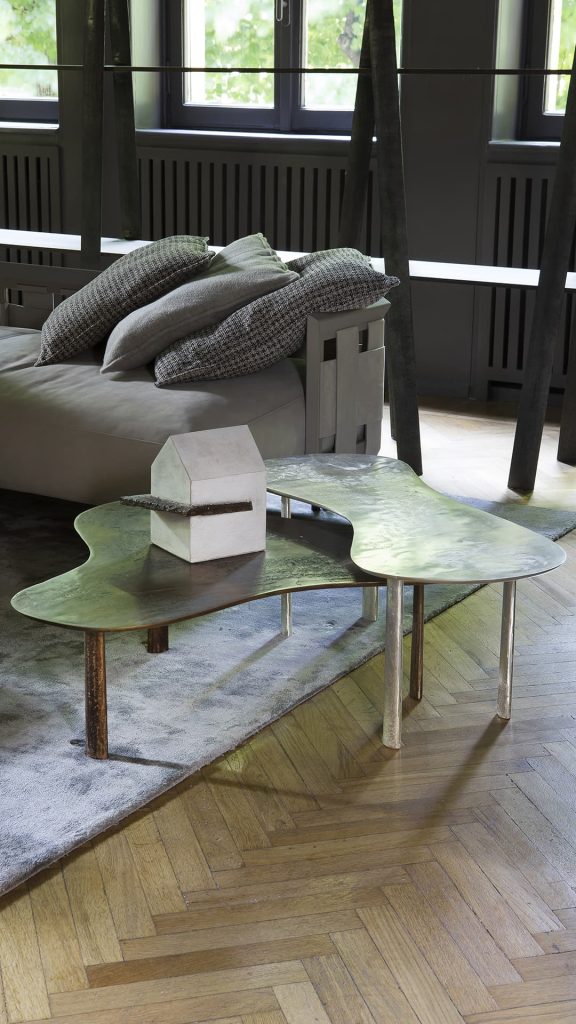 Smooth, voluptuous lines define the contours and shape of the Puddle. Surfaces that are combined in multiple compositions reiterate an effect that enlivens and confers energetic fluidity to any environment, with chromatic reverberations that intensify the material experience of the pieces.