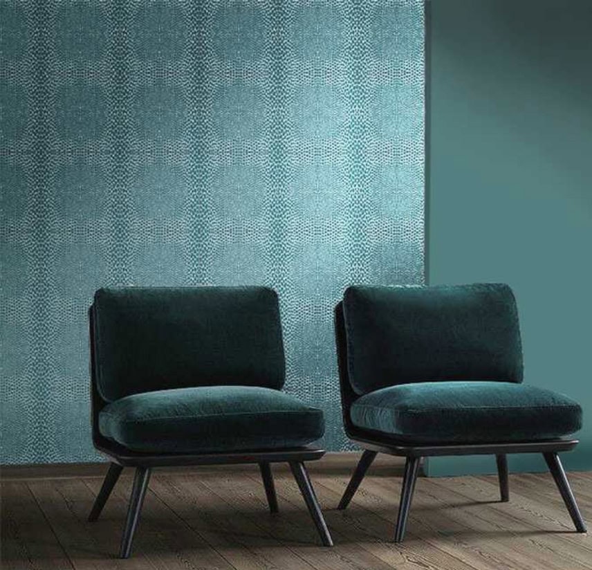 Pure Mosaic in shades of blue with square patterns, set against a wall.