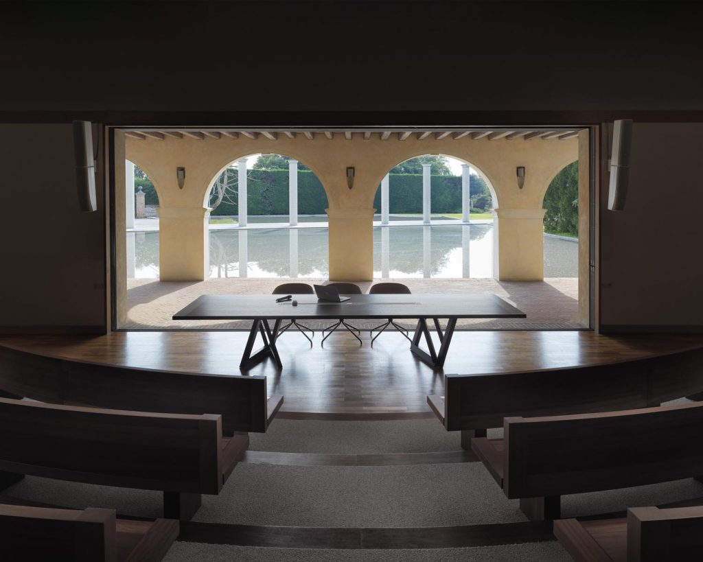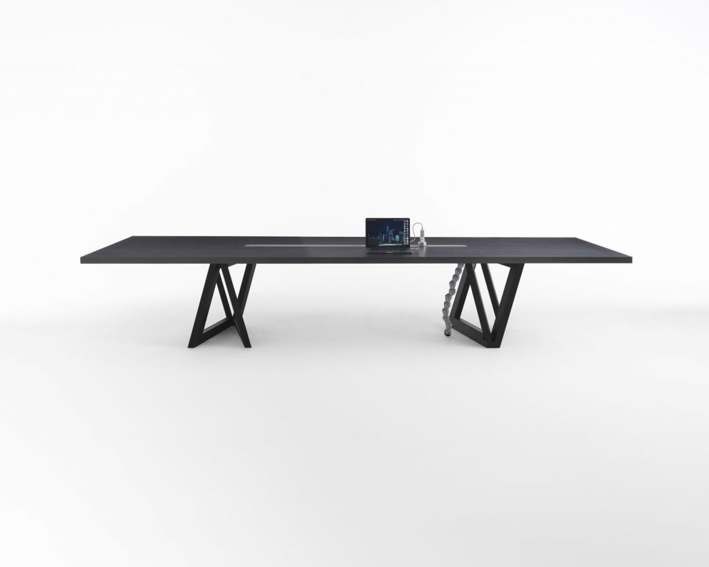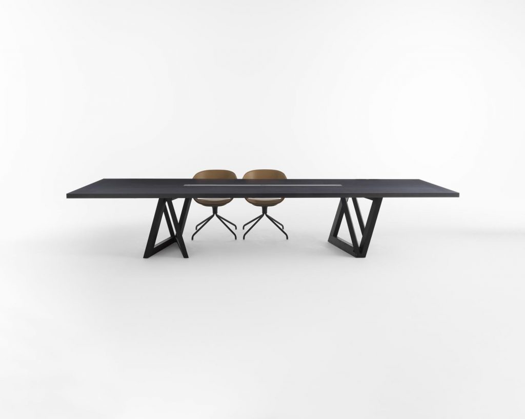 While he was working on the construction of a frame composed of two intersecting surfaces, Dror stumbles into a fascinating discovery: the material, skilfully cut and combined together generates a new shape, a new structural element that, when opened, creates a stable and independent triangular base. In QuaDror 03 this base doubles and creates a table that certainly does not go unnoticed. With its 420 cm in length, it is a large and functional table, featuring an impressive design. The game of balance gives this table a sophisticated look, suitable to become the protagonist of the room.