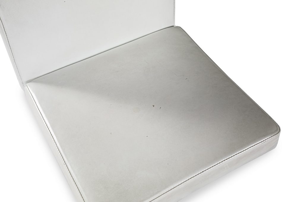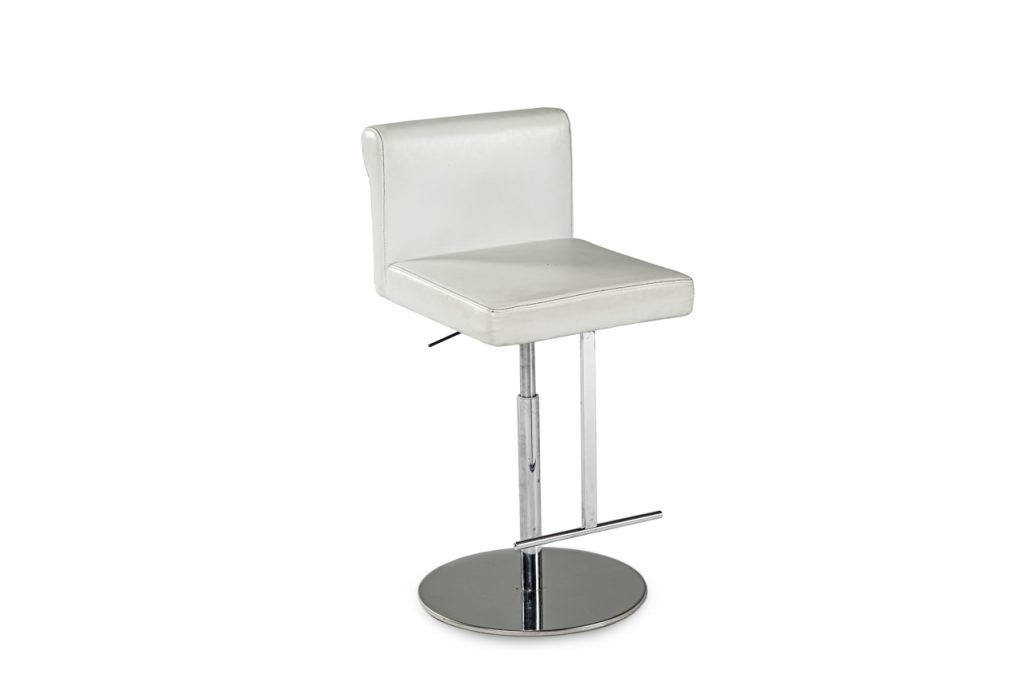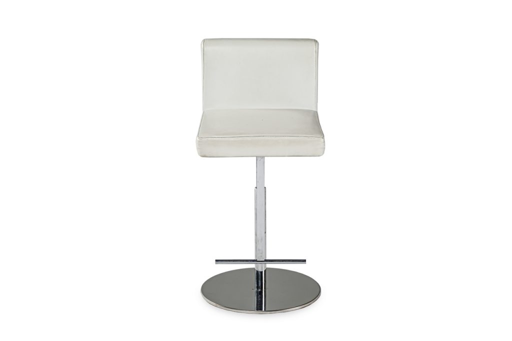 Bar chair with a white leather upholstery - #410 White. Seat on an adjustable height polished metal column and base.