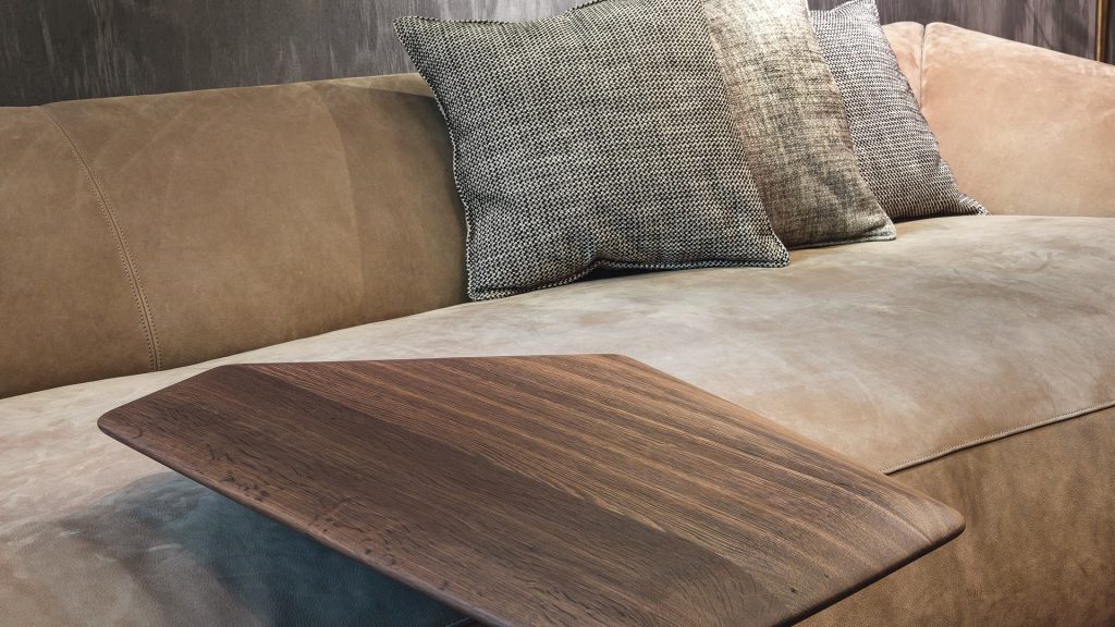 Padding Structure covered polyurethane sheet T40P with reinforcements in agglomerate D200. Seat cushion in polyurethane PF40 with pad in polyurethane T40P, covered with duvet 100% white duck Gold Label 280 and anti-duvet 100% cotton fabric 210 gr. Backrest and armrest cushions in T35S.n Upholstery Leather from our range.