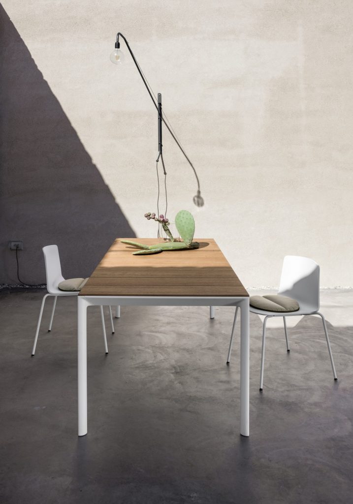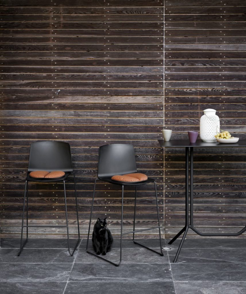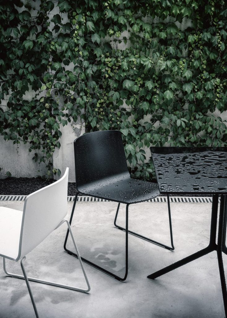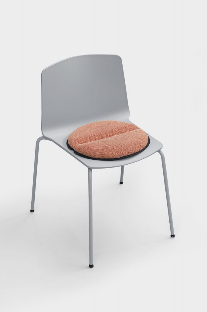 Stackable chair with a distinct and essential style, with a curved plywood structure or, alternatively, in injection-moulded reinforced polypropylene. The frame is available in many versions: with solid wood legs, also demonstrating high-quality craftsmanship, with four legs, or on a tubular metal slide frame with or without armrests. In addition, two new stools are available, also stackable, in two different heights. The structure is also available in a padded version, upholstered either entirely or at the front in a choice of high-quality fabrics and leather, allowing many colour combinations to be created with the frames. On request, Rama can be fitted with a water outlet hole and complemented with a removable Lips cushion for extra comfort and further colour options.