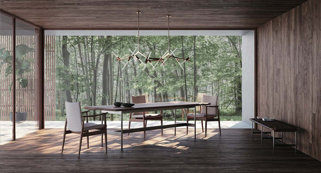 The Rivage Chairs are composed by a steel structure which is combined with a soft seat. The contemporary and appealing design of this product conveys a sense of calm, relaxation, solidity and safety. The comfortable armrests in walnut or oak draw inspiration from the typical curved shape of the roofs of Japanese temples and shrines. Thanks to the various finishes and shades available, the Rivage armchair fits perfectly into any living space.