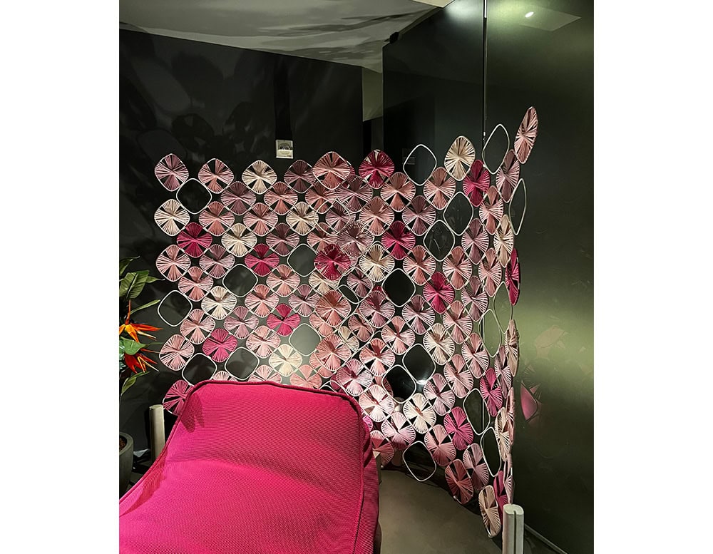 A sleek metal structure with a rope design, offering a stylish and functional partition for any space. This product is discontinued. Sold in a set of two.