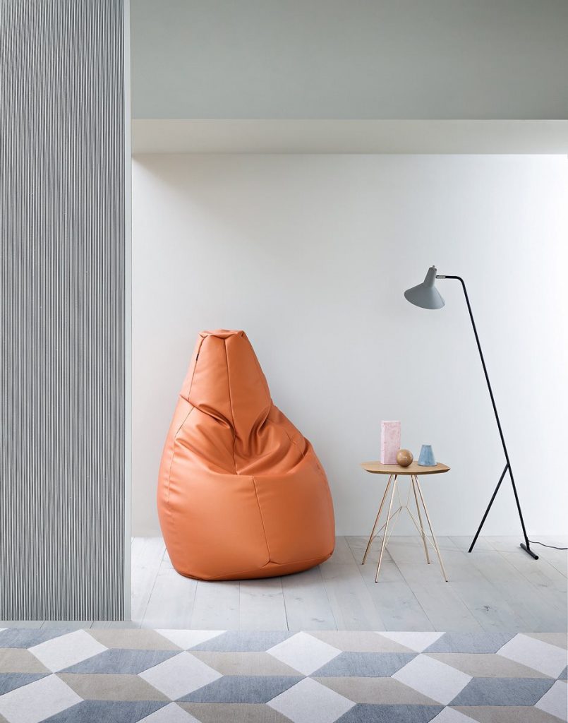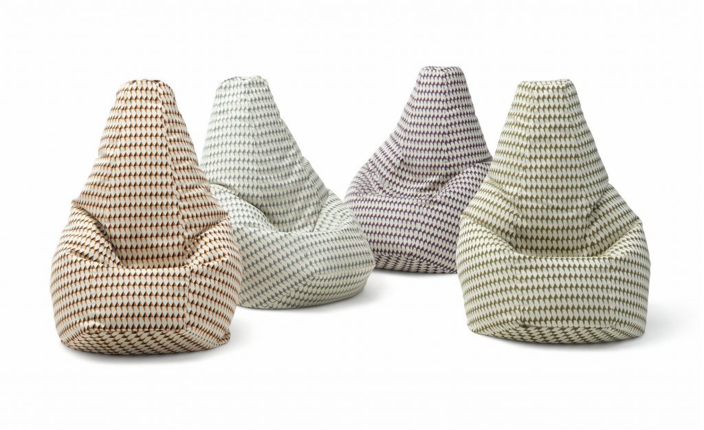 Envelope containing highly resistant expanded polystyrene pellets. Cover in: Vip (also for outdoor, fire resistant,antibacterial with Silverguard® and stain-proof with Permablock3® treatment), Tulip, Pied de poule and leather. The versions in Tulip and Pied de poule are removable