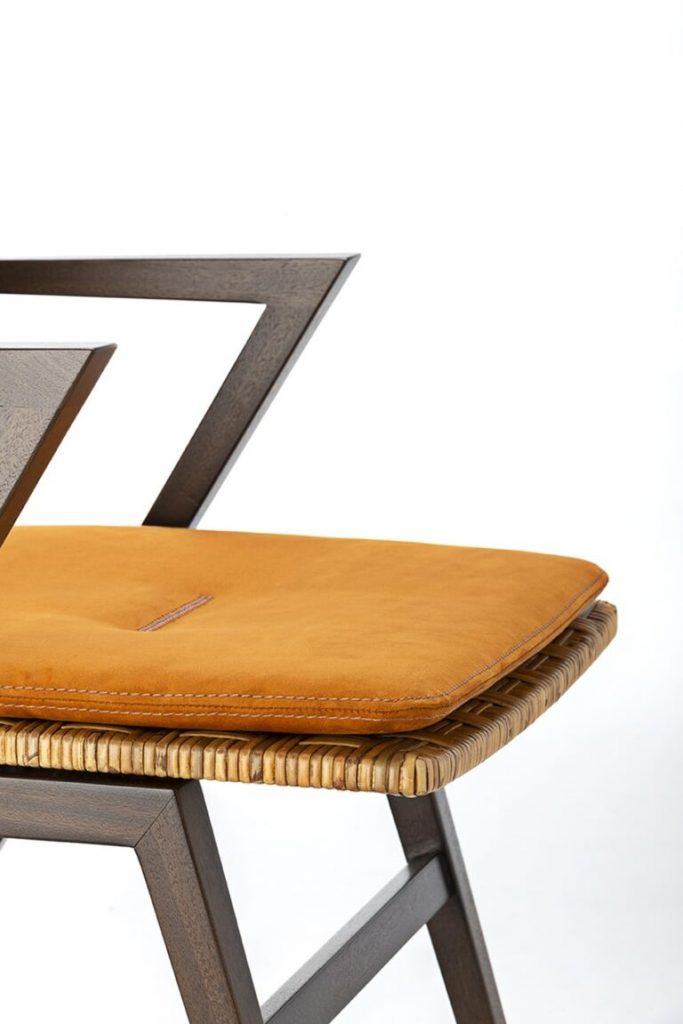 The chair, made of a series of consistent shapes, recalls some precious embroidery from another era. The wood fibers, woven together, are not only a decorative element but they also deliver a one-of-a-kind glamour to the design.