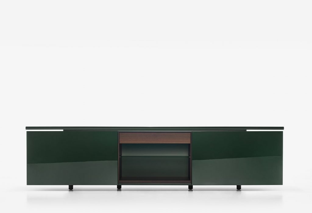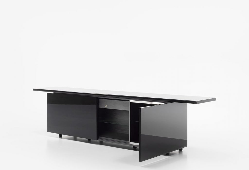 Reflecting Giotto Stoppino and Lodovico Acerbis's role as a leading exponent of modern Italian design, the Sheraton sideboard combines a sleekly groundbreaking shape with innovative functionality. The winner of the Compasso d'Oro in 1979, the seminal design forms part of the permanent collection at Londons Victoria and Albert Museum, and today sees new editions of the wood cabinet finished with Acerbis's distinctive glossy lacquers in six new contemporary tones. The Sheratons original closures and sliding system " a revelation upon its initial release" have been further modernized to ensure a smoother gliding.