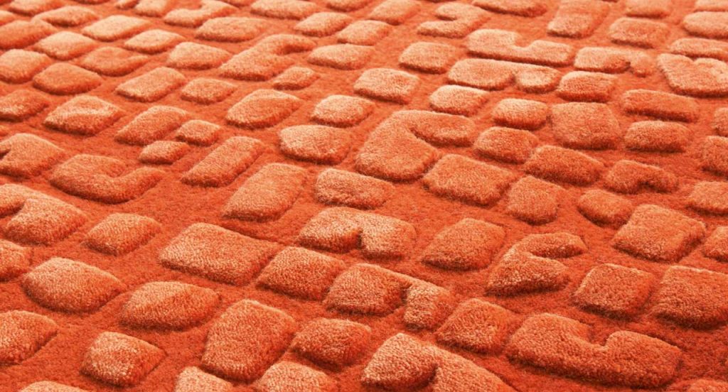 Signs is a hand tufted rug. The irregular geometric shapes which decorate the rug in relief are made of silk and are hand chiselled in the wool surface. The background and the designs are dyed in the same colour; considering that silk dying always results in lighter tones, it creates a tone-on-tone effect. Only one colour can be chosen.